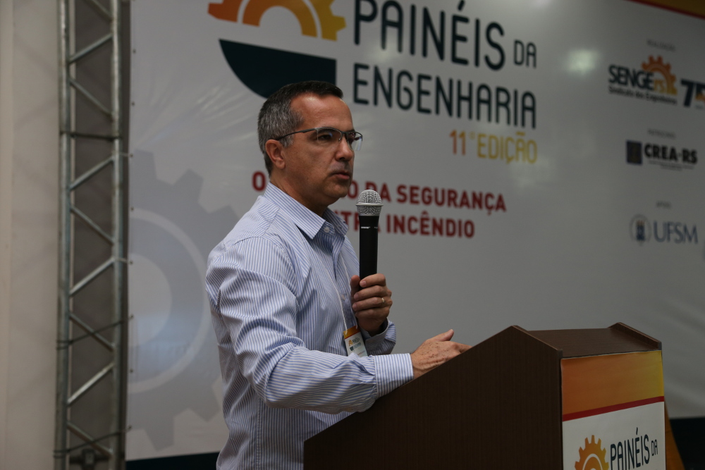 O diretor do SENGE, Alexandre Rava de Campos, apresentou palestra sobre cases em projetos, instalações, inspeções e manutenções em redes hidráulicas de combate a incêndio. "Fico feliz em ver um auditório cheio para discutir a segurança contra incêndio. É uma pena que, para alcançarmos esse número de pessoas, foi necessária uma tragédia aqui em Santa Maria. Nós, latino-americanos, somos muitos reativos, não temos uma cultura de prevenção. Lamentável também que parecemos estar entrando em uma curva de acomodação, esquecendo toda a comoção gerada pelo episódio na Kiss", disse o engenheiro.