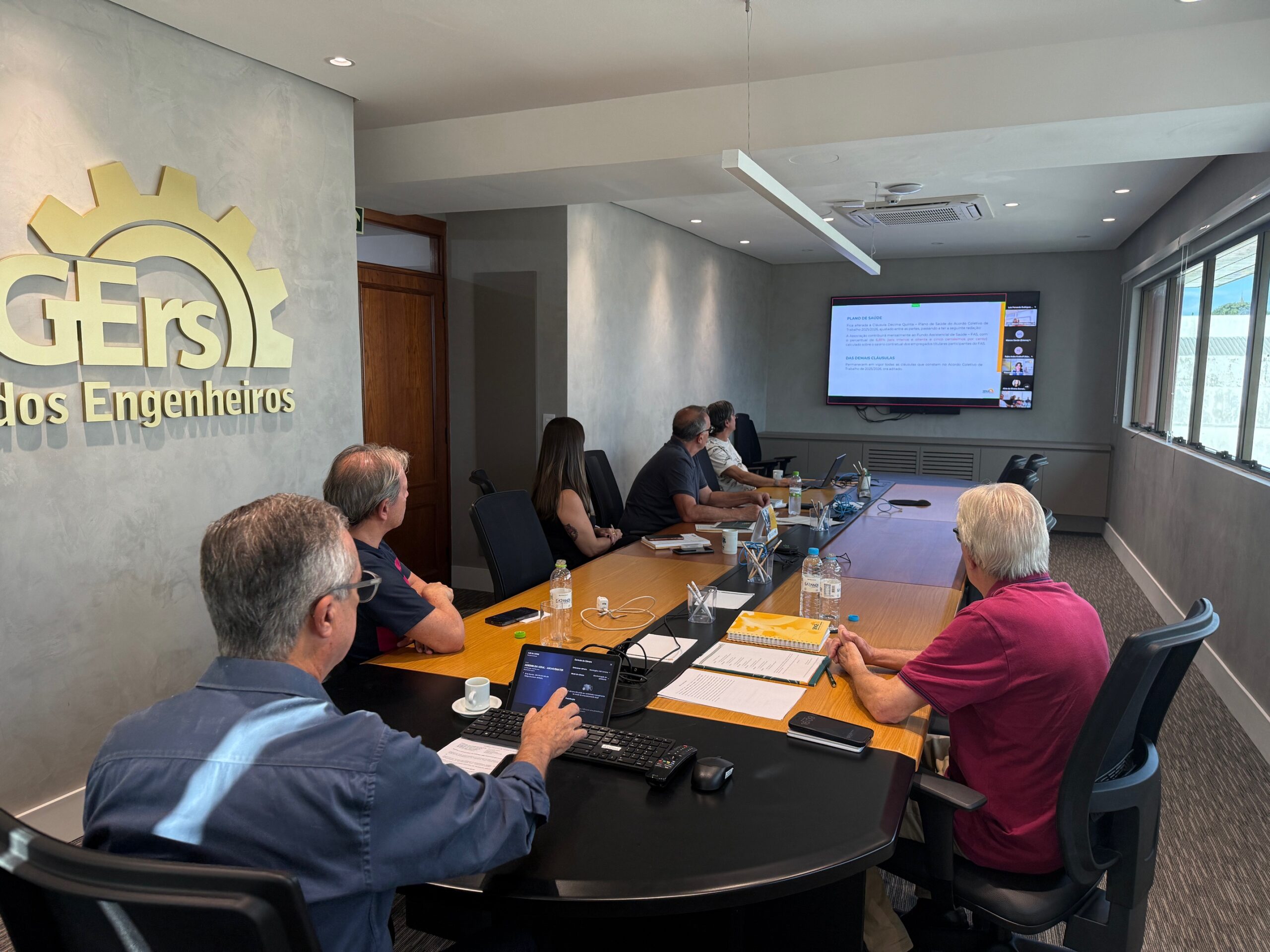 O SENGE-RS realizou, no dia 16 de abril, assembleia com os empregados da ASCAR/EMATER-RS para deliberar sobre a proposta de termo aditivo ao Acordo Coletivo 2025/2026, referente à Cláusula 15ª, que trata do plano de saúde FAS.