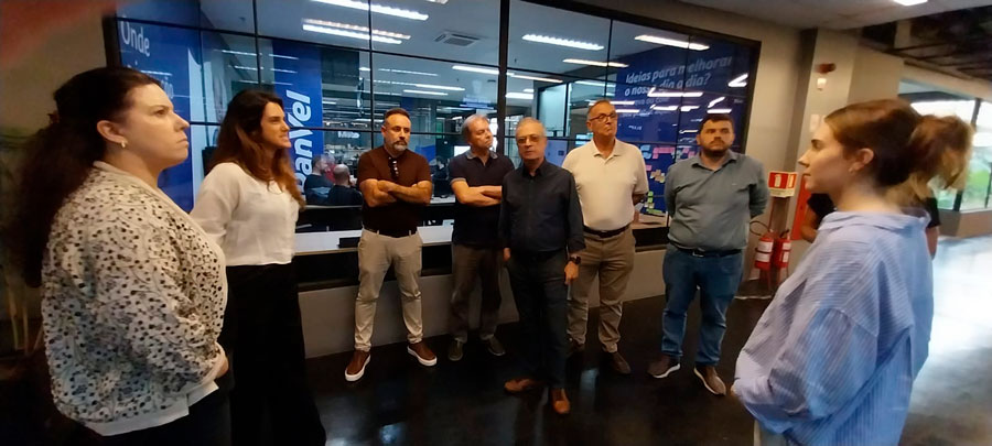 Participaram da visita o presidente do SENGE-RS, Cezar Henrique Ferreira, acompanhado dos vice-presidentes João Leal Vivian e José Luiz Azambuja, dos diretores Dulphe Pinheiro Machado Neto, Diego Mizette Oliz e Jessica Bandeira Moraes, e da coordenadora Luciane Mye Ono.