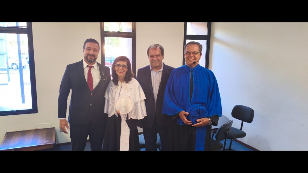 Na foto, o vice-presidente do SENGE-RS, José Luiz Azambuja, o representante do CREA-RS, Fábio Fanfa, a reitora da UFRGS, Marcia Barbosa, e o diretor da Faculdade de Agronomia, Paulo Vitor Dutra de Souza.