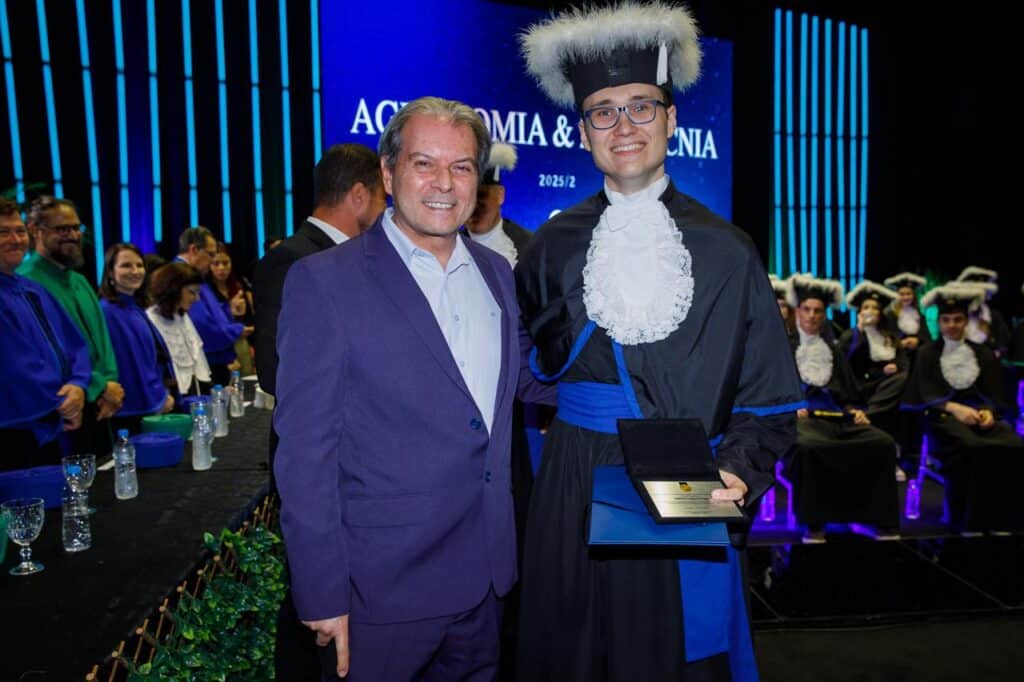 Foram homenageados com o Mérito SENGE os formandos destaque da turma, Gabriel Augusto Engel e Lizandro Salin Andres.
