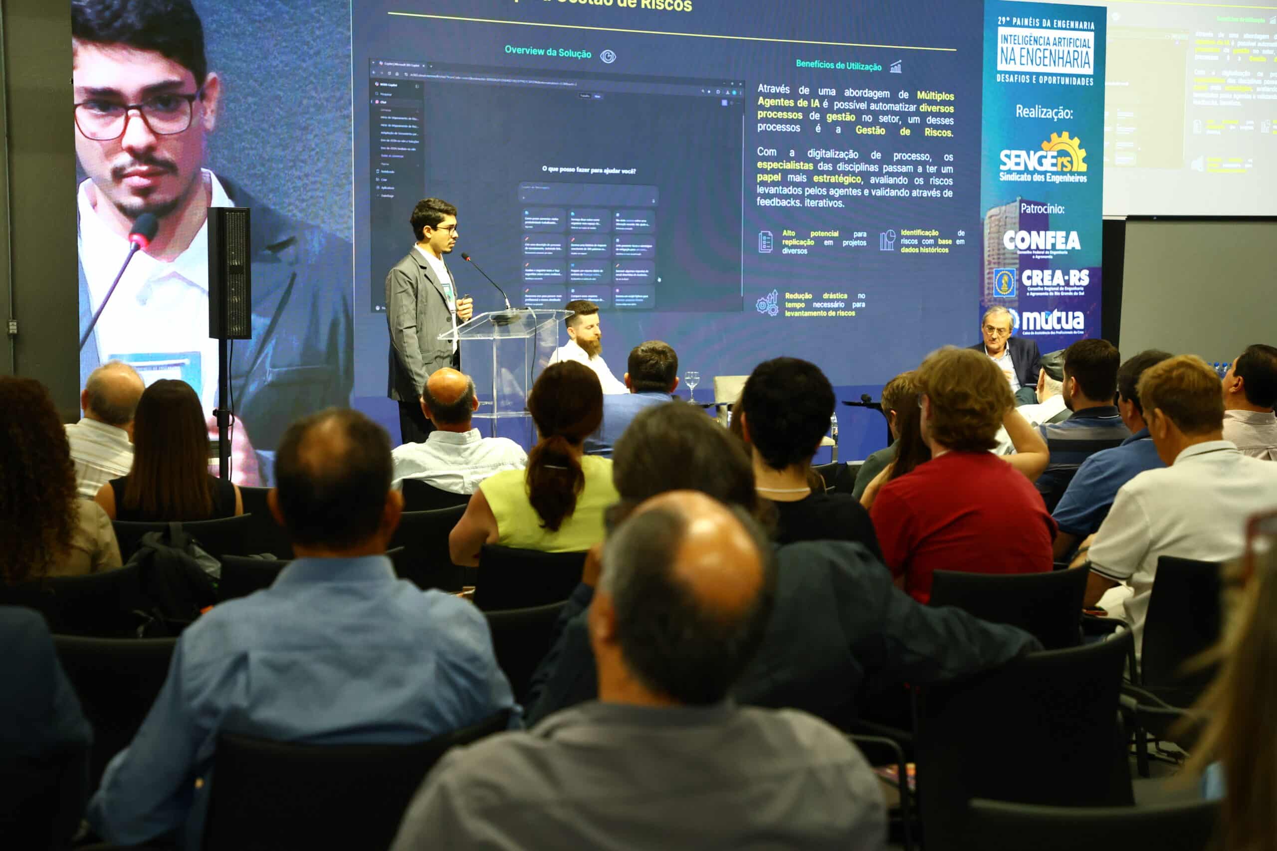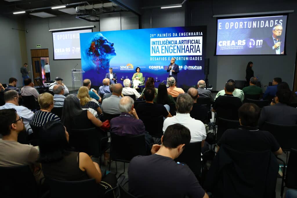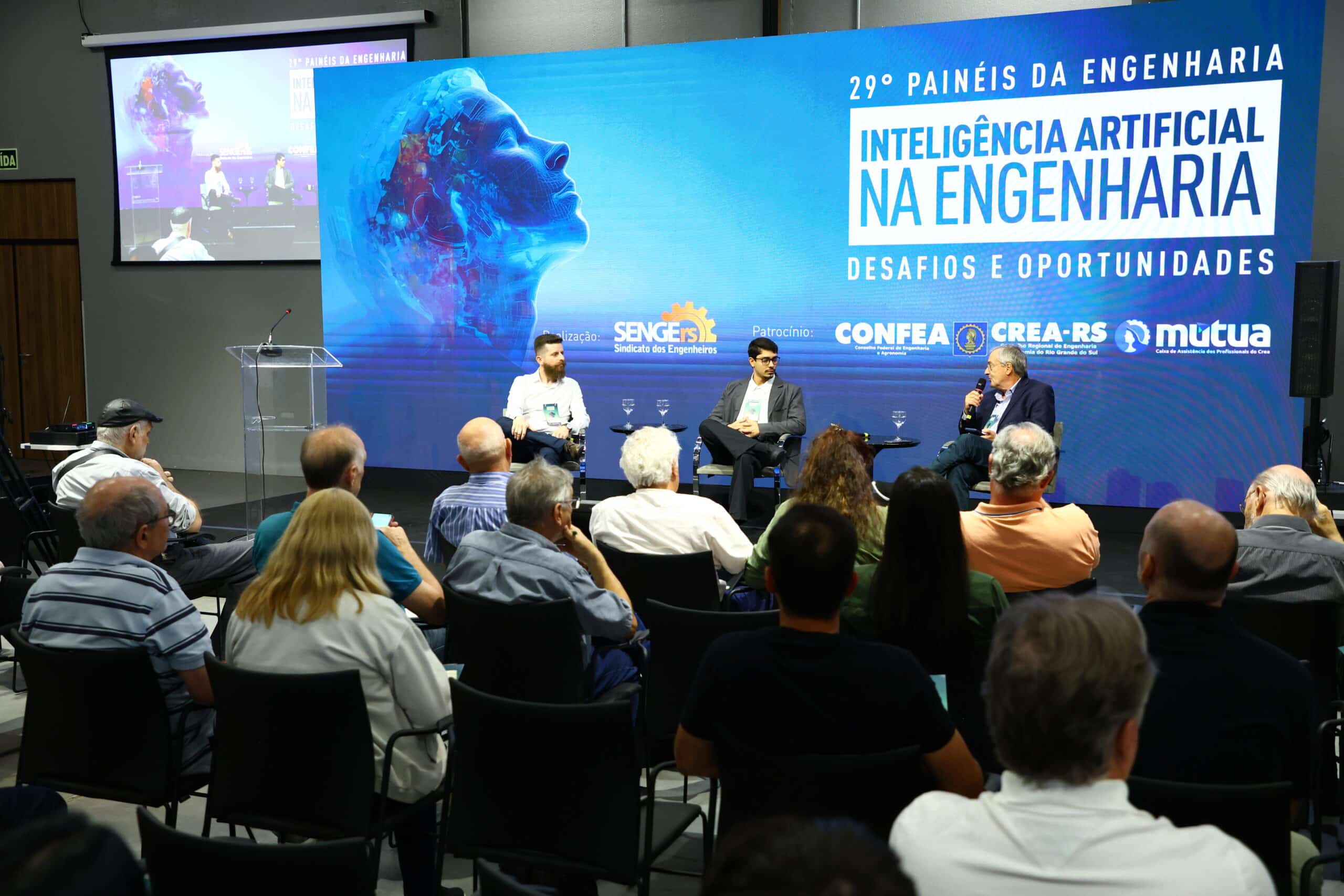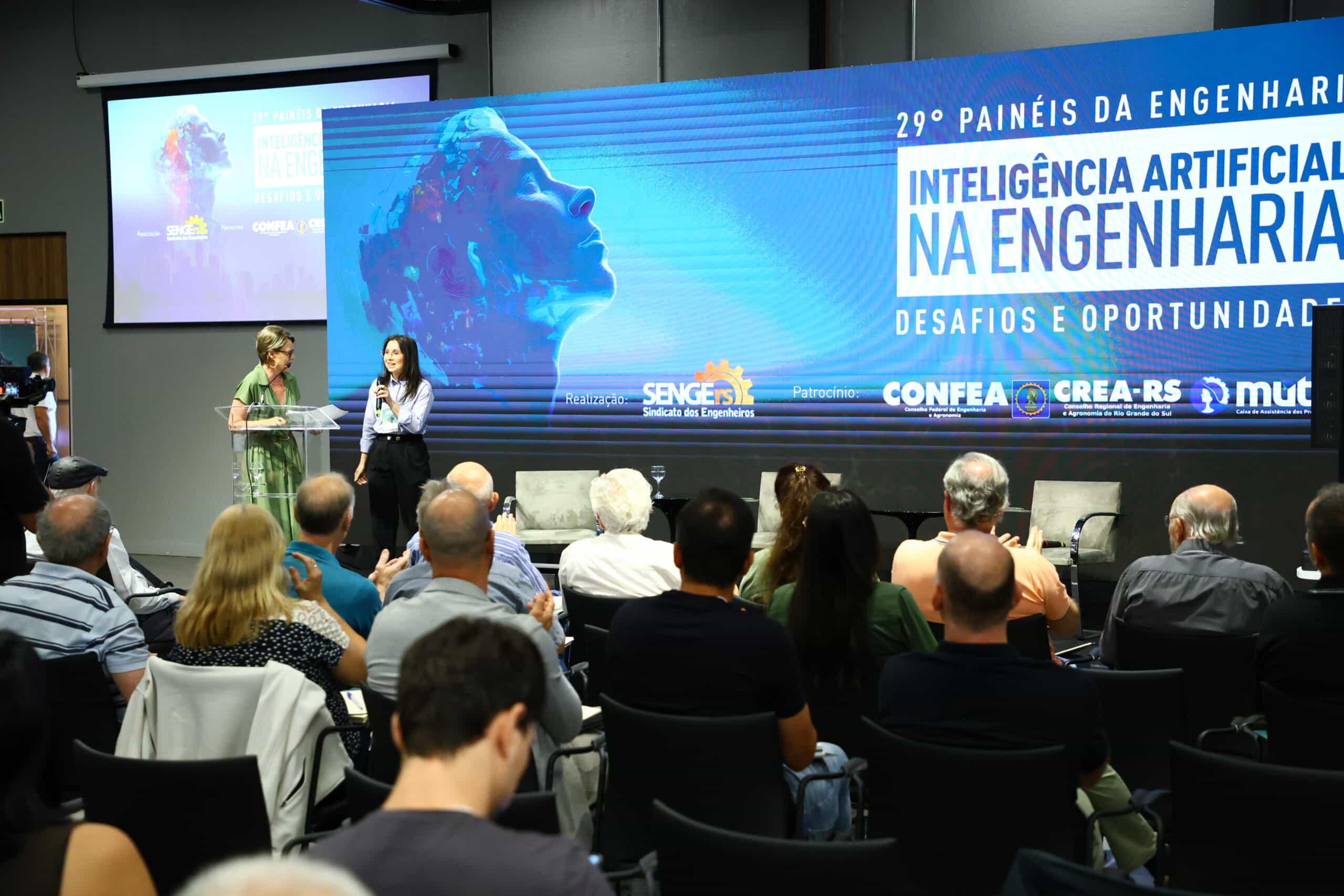 Casa cheia, debate qualificado e foco no futuro da profissão marcaram o 29º Painéis da Engenharia, realizado pelo SENGE-RS no dia 4 de dezembro, no Teatro do CIEE-RS, localizado no Centro Histórico de Porto Alegre. Com o tema “Inteligência Artificial na Engenharia: desafios e oportunidades”, o evento integrou a programação em celebração ao Dia do Engenheiro e colocou em pauta como a IA já transforma o exercício da Engenharia em diferentes setores.