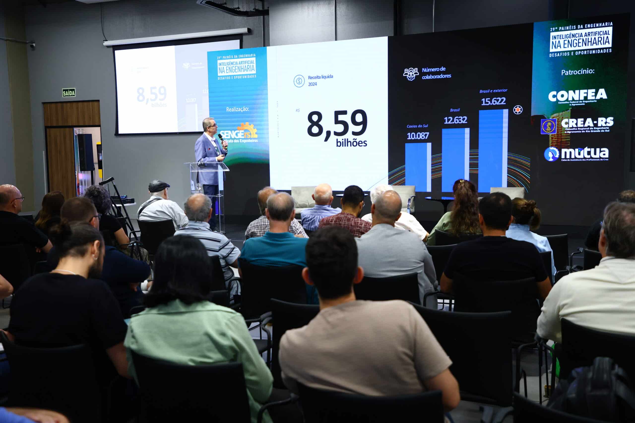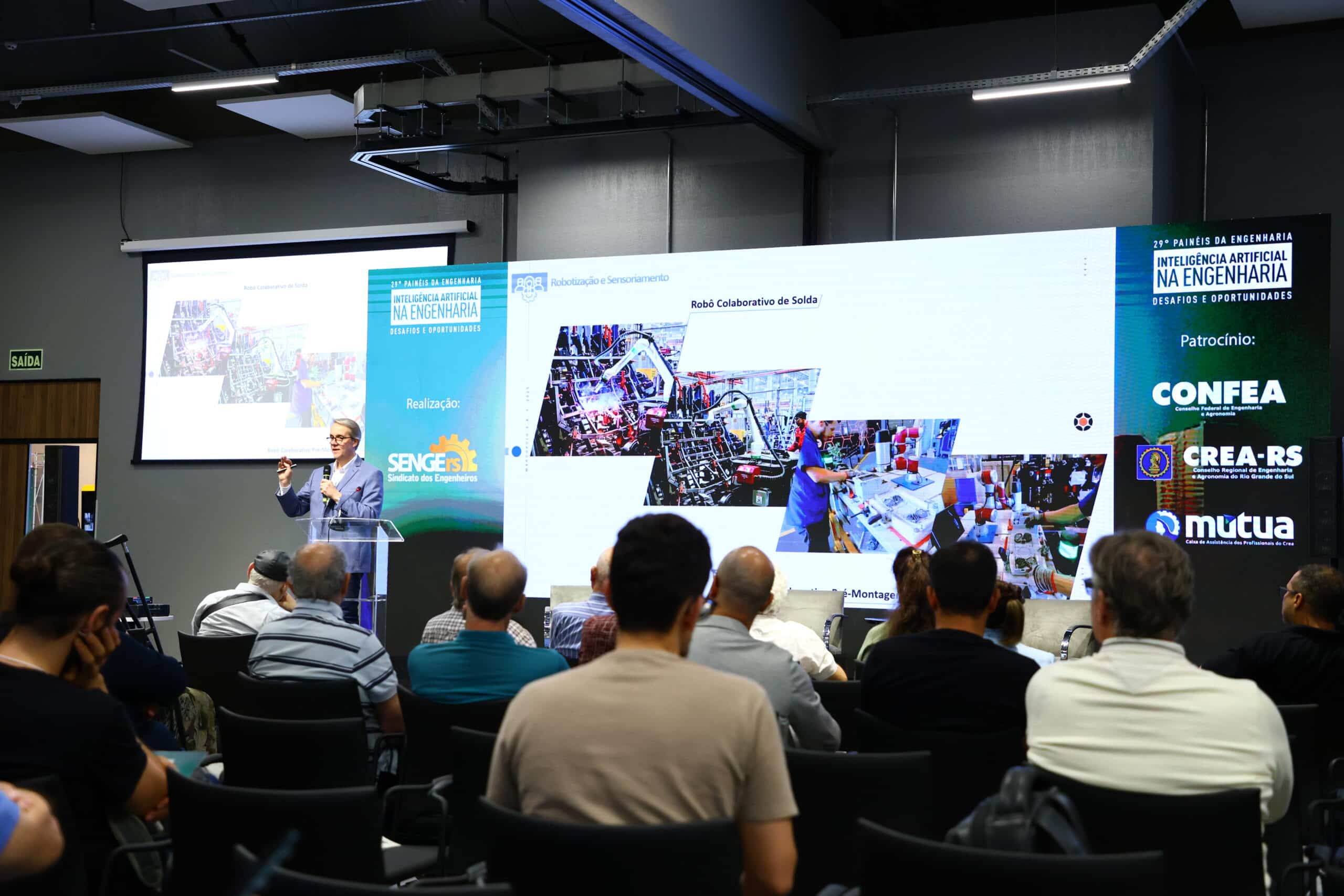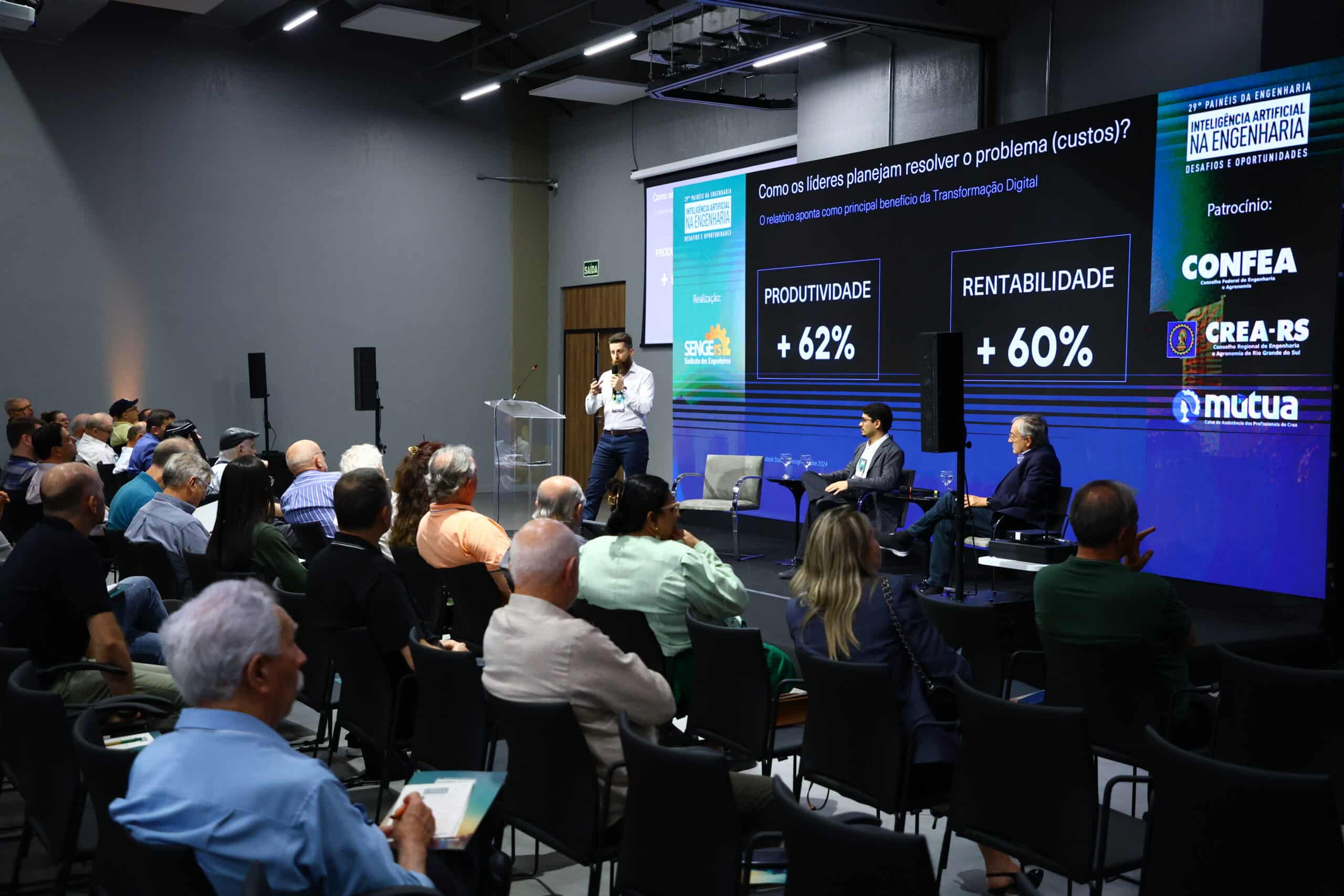 Casa cheia, debate qualificado e foco no futuro da profissão marcaram o 29º Painéis da Engenharia, realizado pelo SENGE-RS no dia 4 de dezembro, no Teatro do CIEE-RS, localizado no Centro Histórico de Porto Alegre. Com o tema “Inteligência Artificial na Engenharia: desafios e oportunidades”, o evento integrou a programação em celebração ao Dia do Engenheiro e colocou em pauta como a IA já transforma o exercício da Engenharia em diferentes setores.
