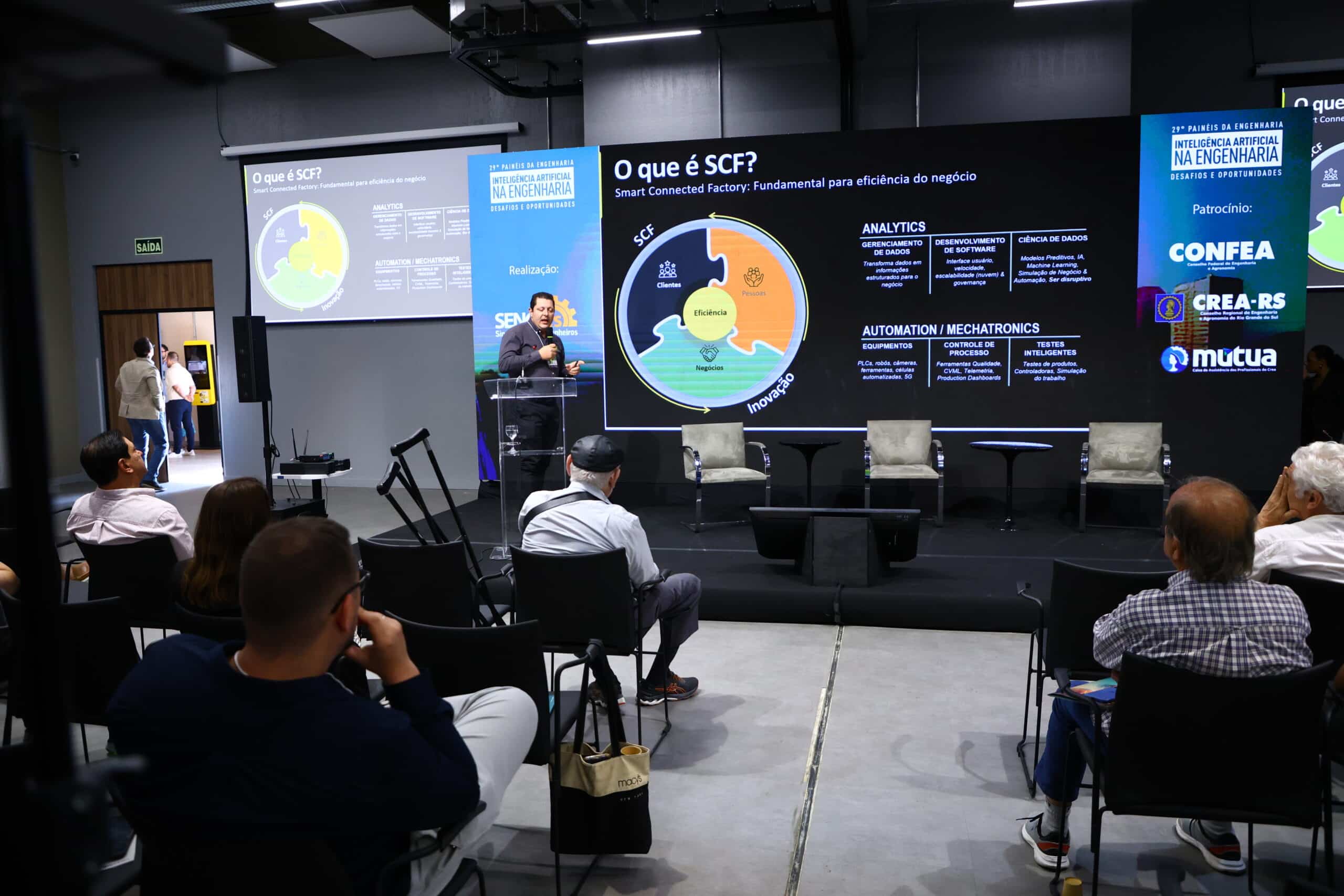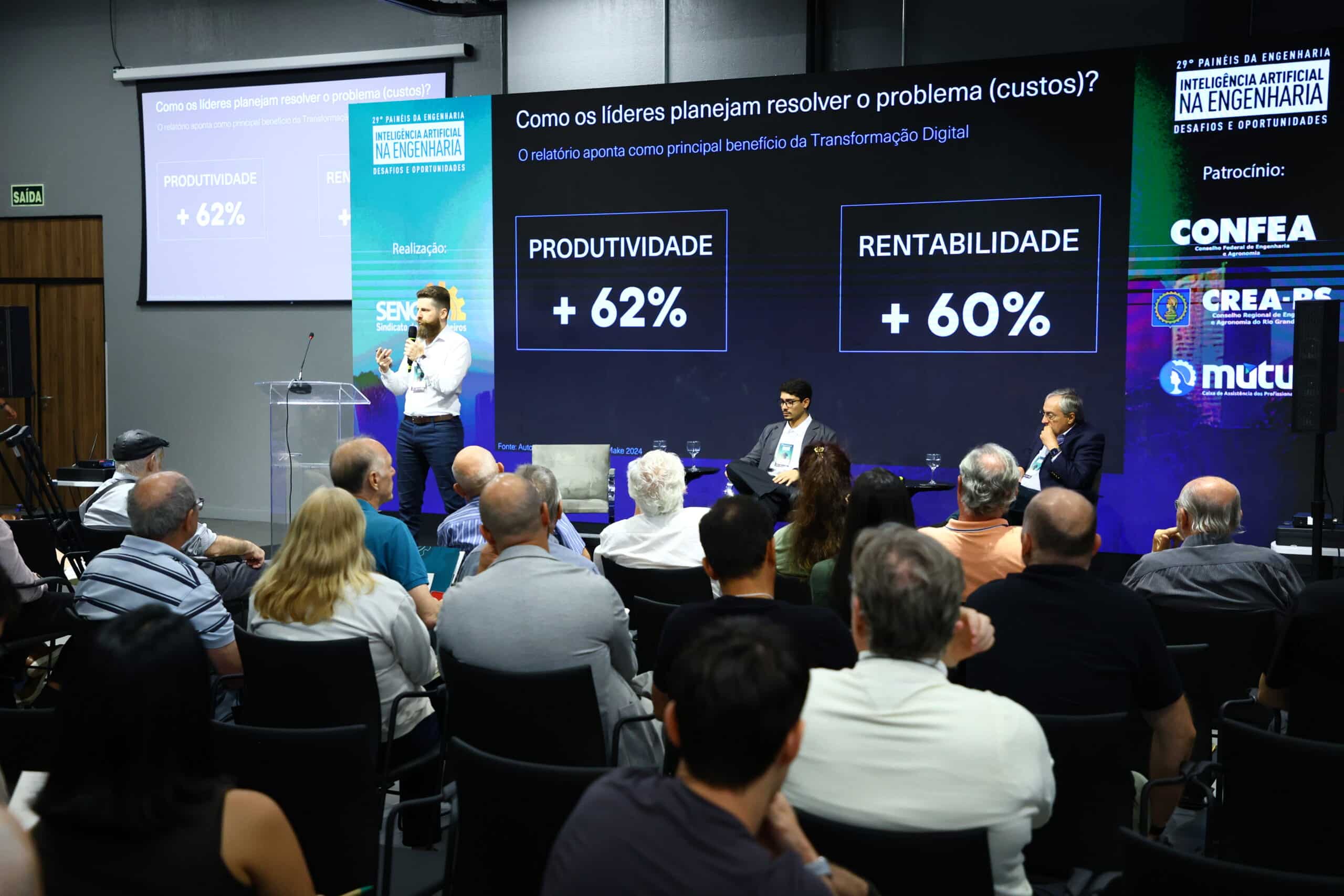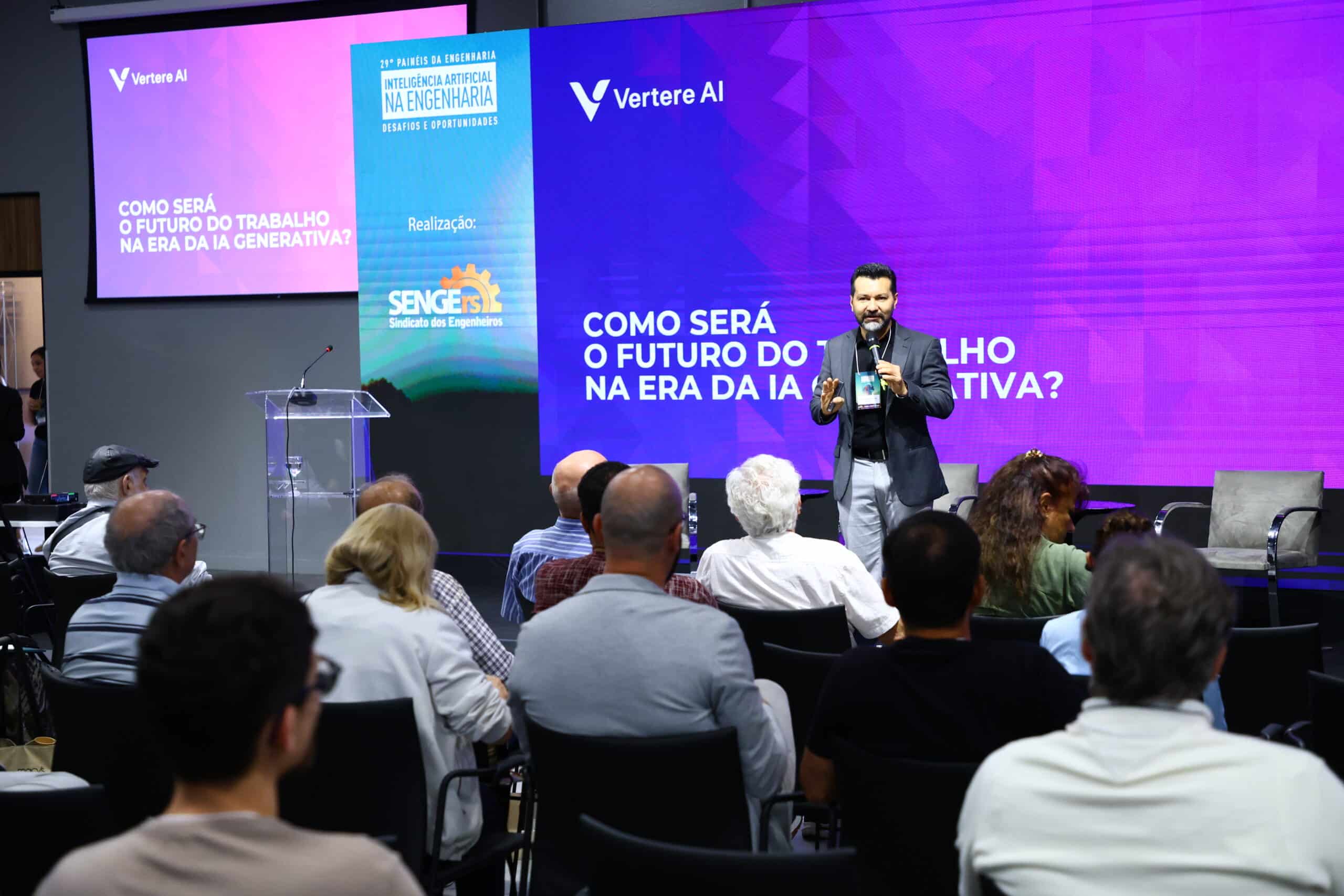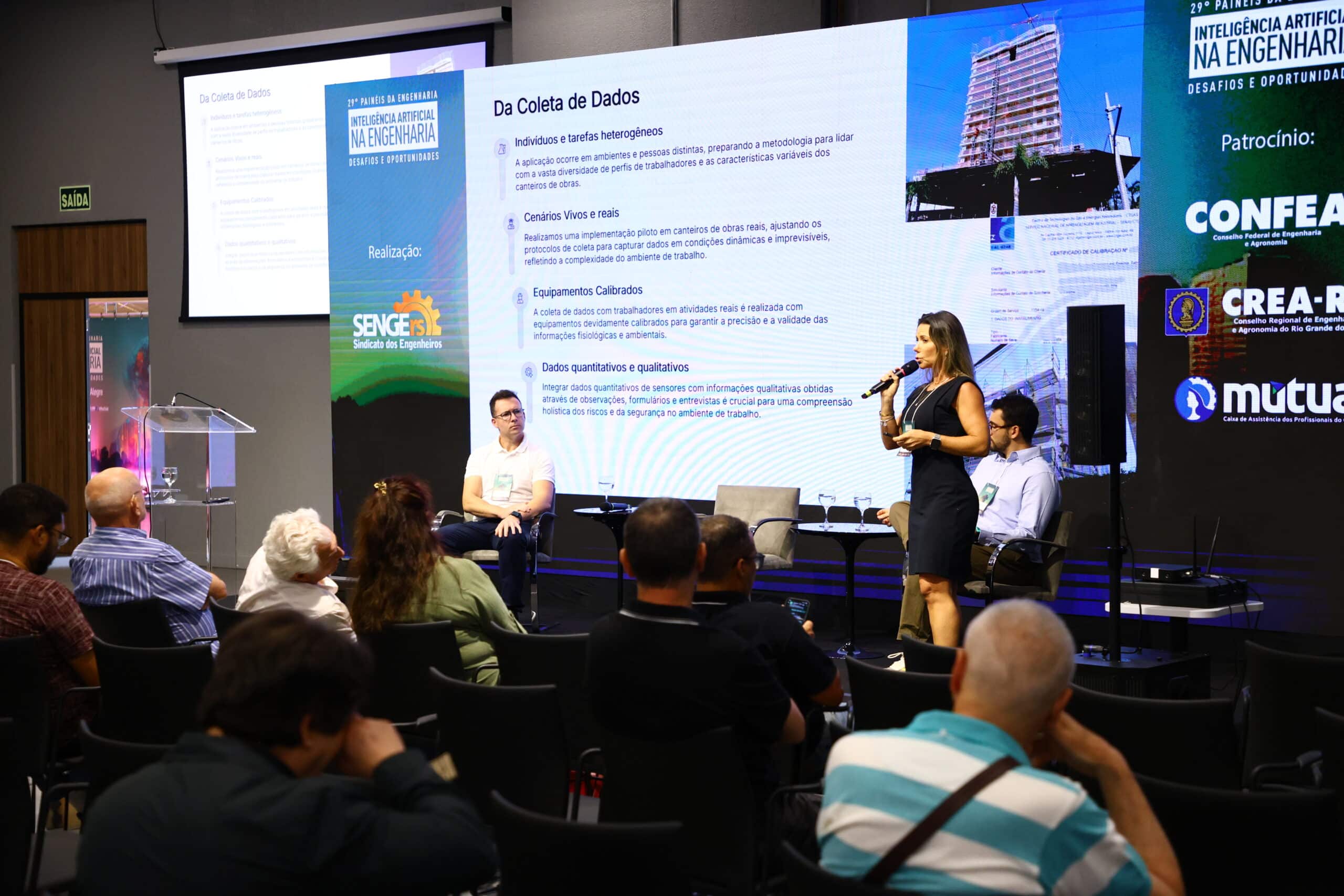 Casa cheia, debate qualificado e foco no futuro da profissão marcaram o 29º Painéis da Engenharia, realizado pelo SENGE-RS no dia 4 de dezembro, no Teatro do CIEE-RS, localizado no Centro Histórico de Porto Alegre. Com o tema “Inteligência Artificial na Engenharia: desafios e oportunidades”, o evento integrou a programação em celebração ao Dia do Engenheiro e colocou em pauta como a IA já transforma o exercício da Engenharia em diferentes setores.