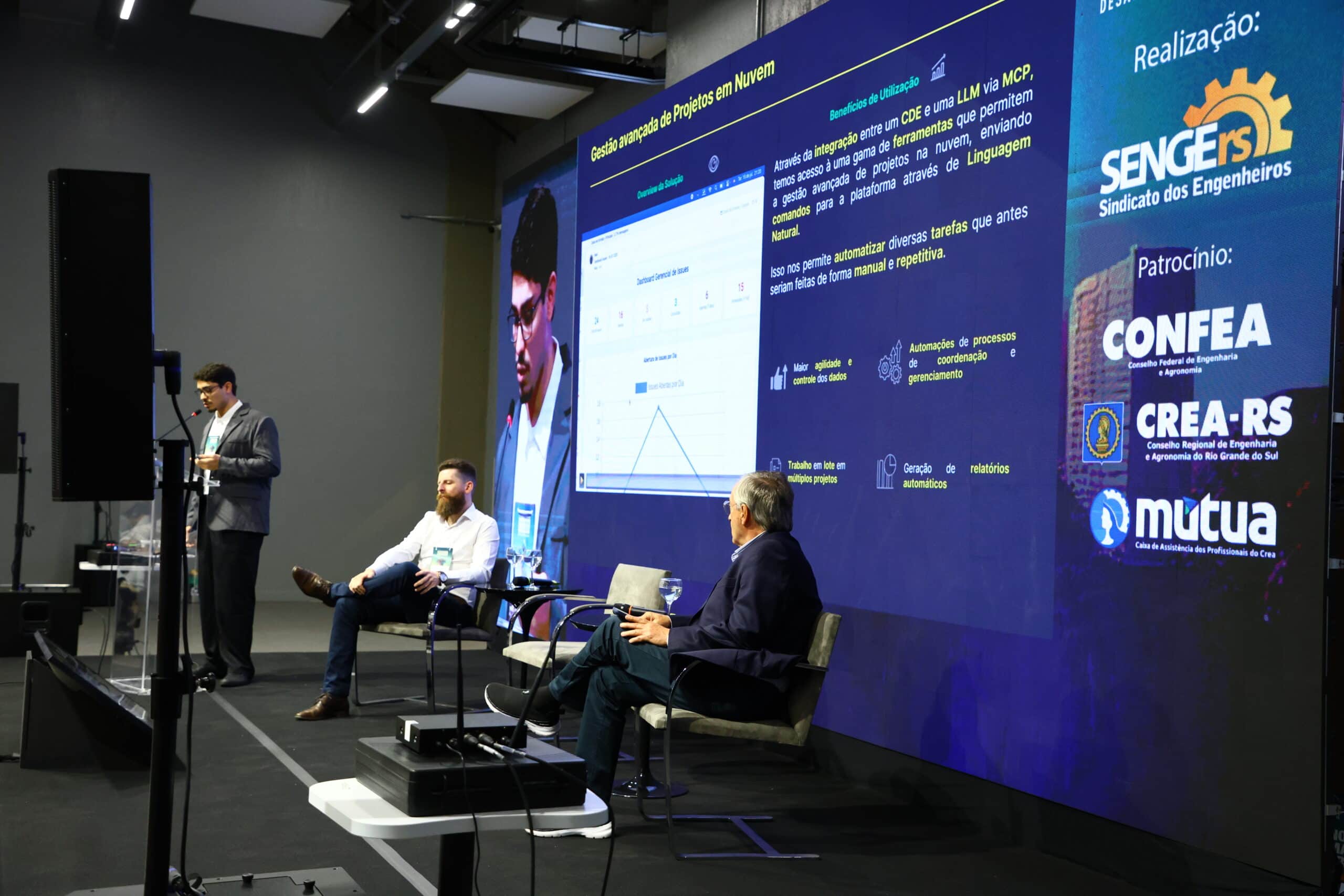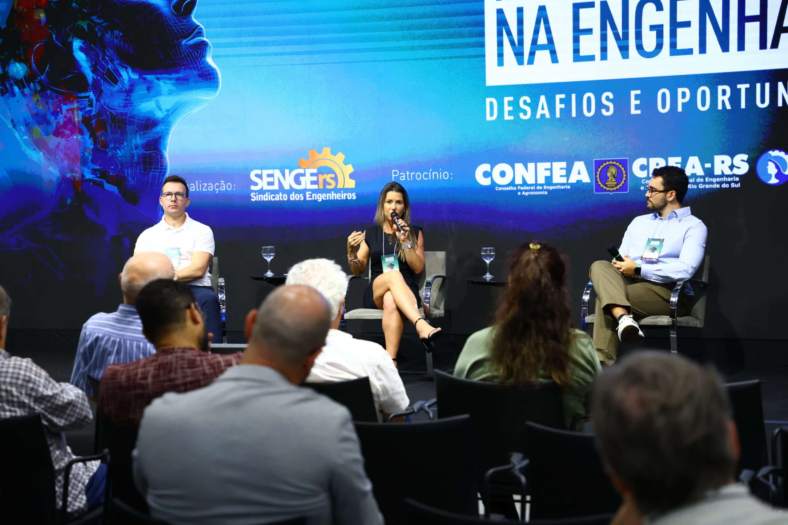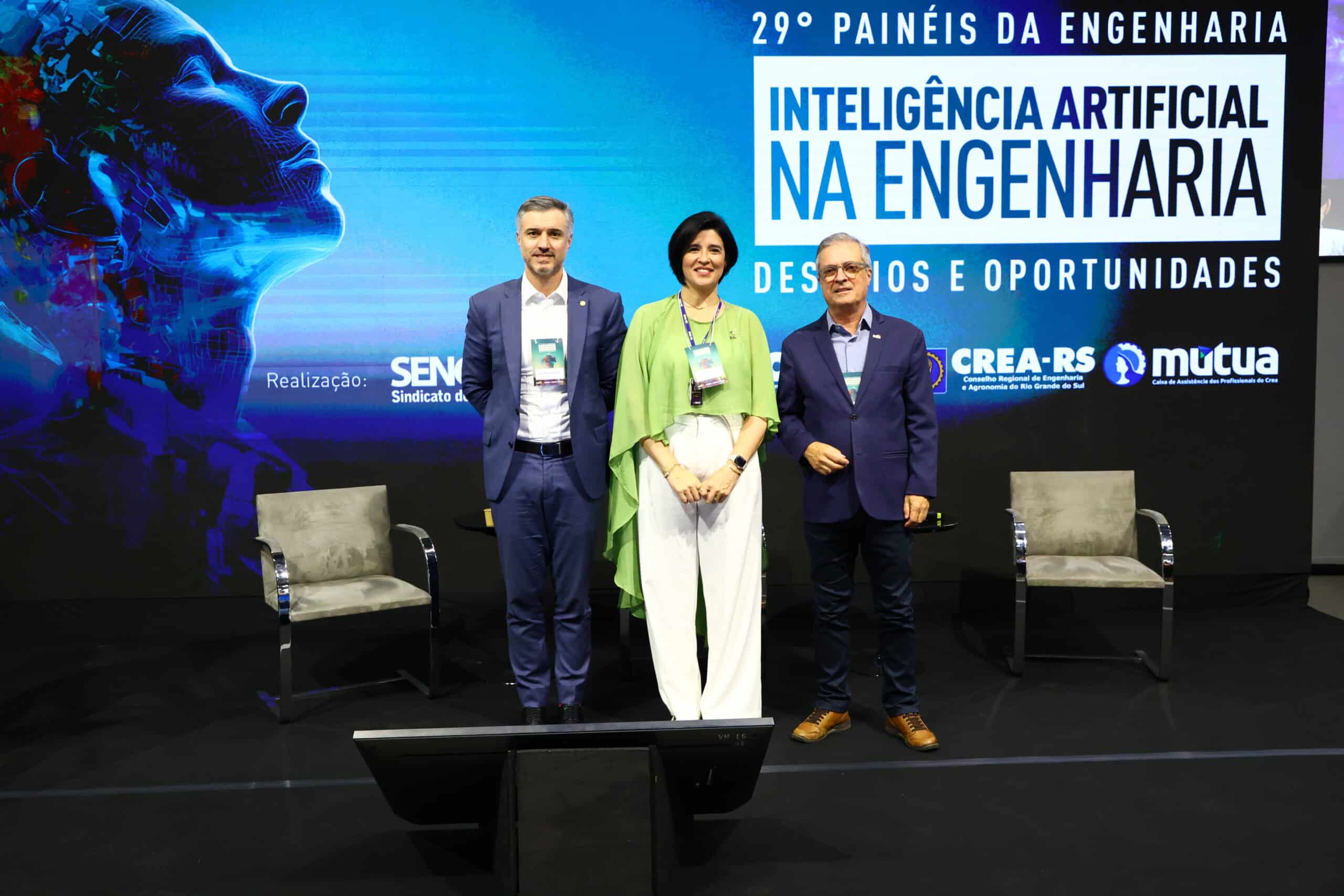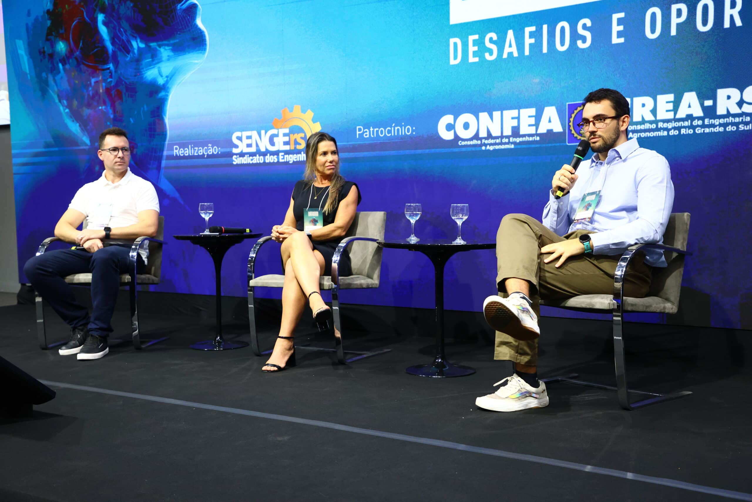 A abertura contou com a participação do presidente do SENGE-RS, Cezar Henrique Ferreira, do presidente do CONFEA, Vinicius Marchese, e da presidente do CREA-RS, Nanci Walter, que reforçaram a relevância do tema para toda a categoria e para o Sistema Profissional. Em suas manifestações, destacaram a importância de alinhar inovação tecnológica, responsabilidade técnica e valorização profissional, garantindo que a adoção da Inteligência Artificial ocorra com segurança para a sociedade e com respaldo às atribuições de engenheiras e engenheiros.