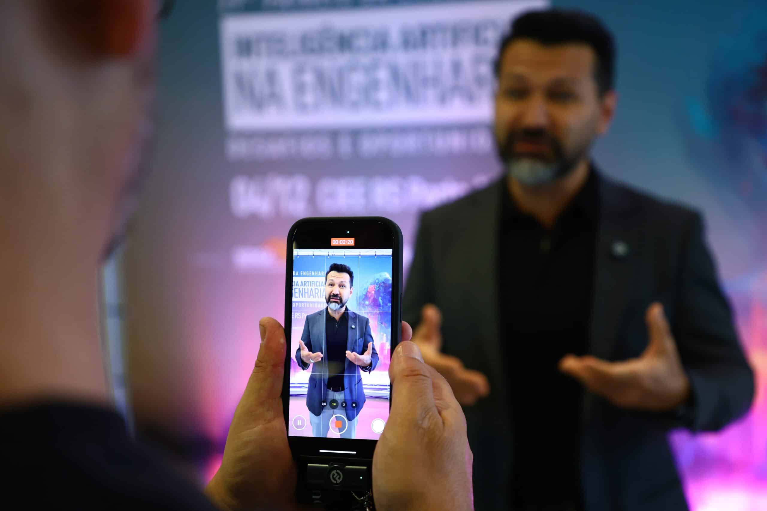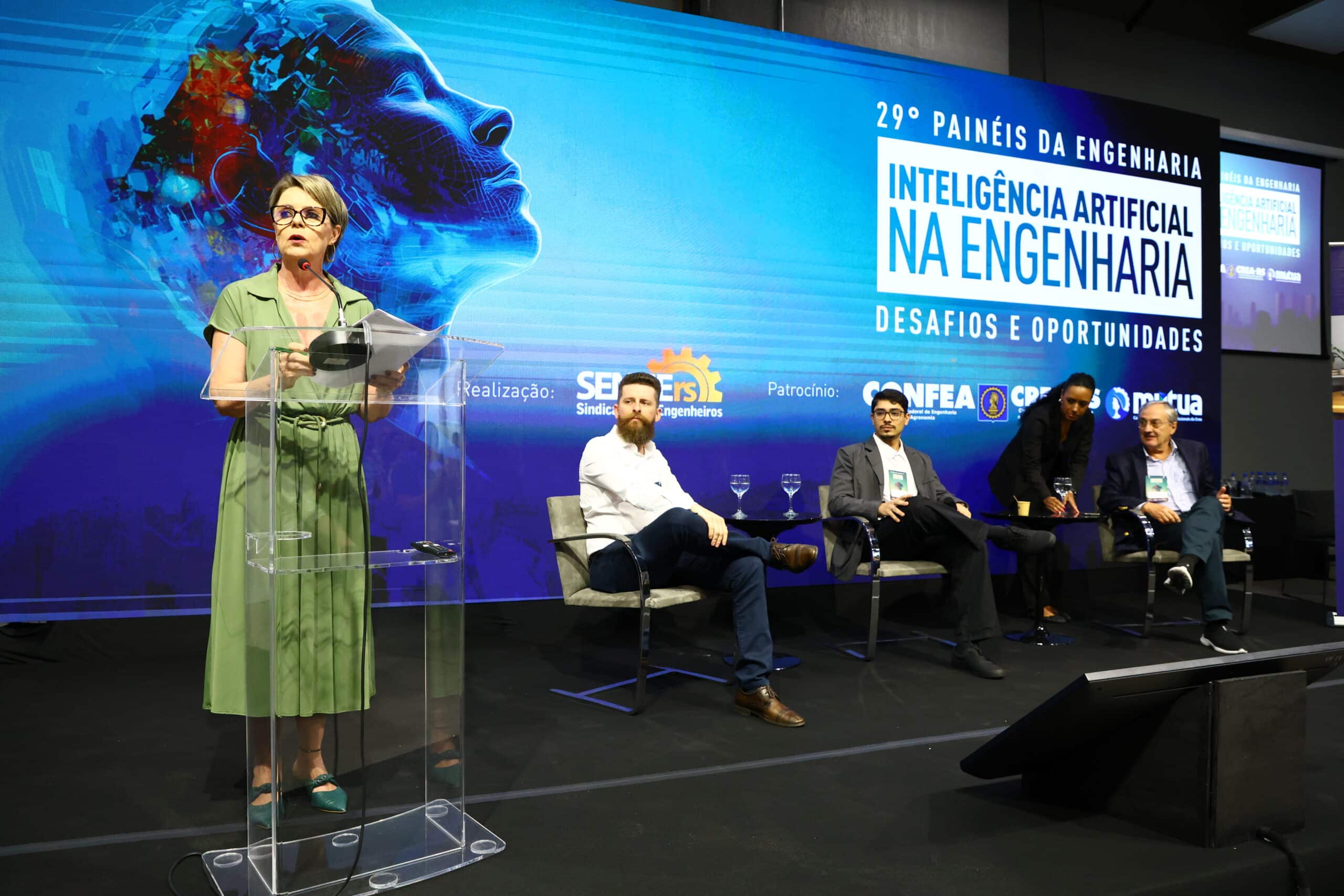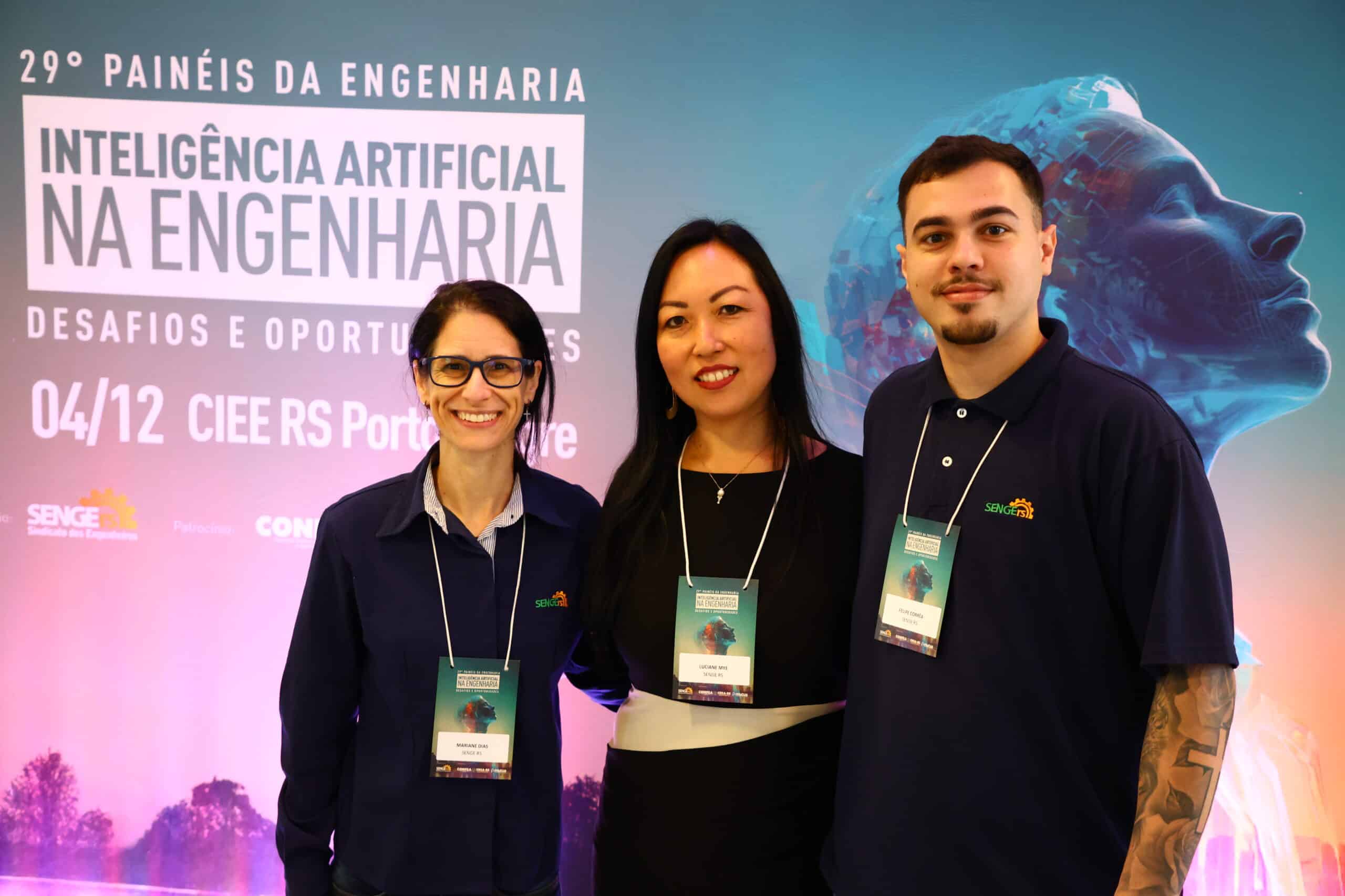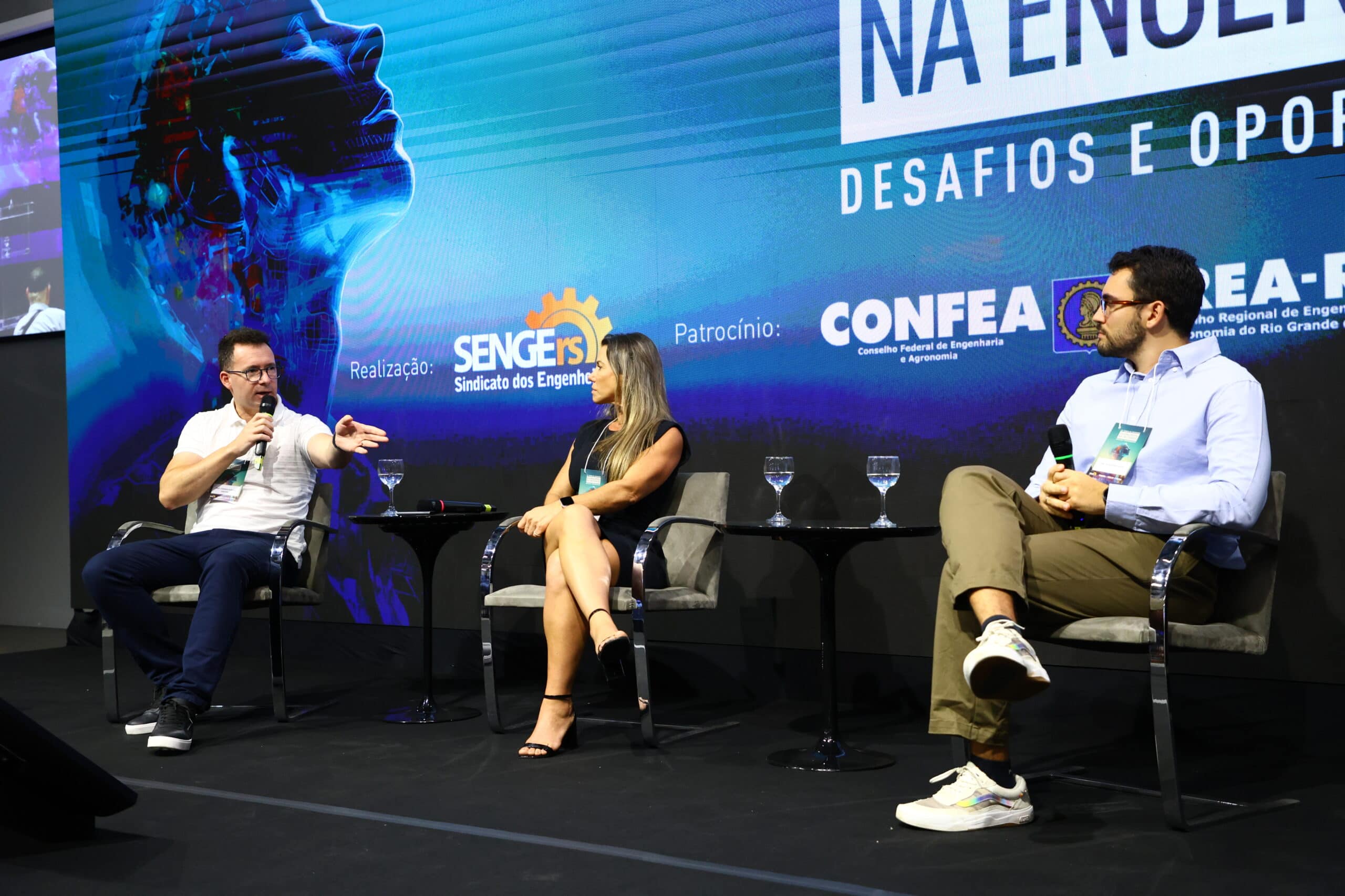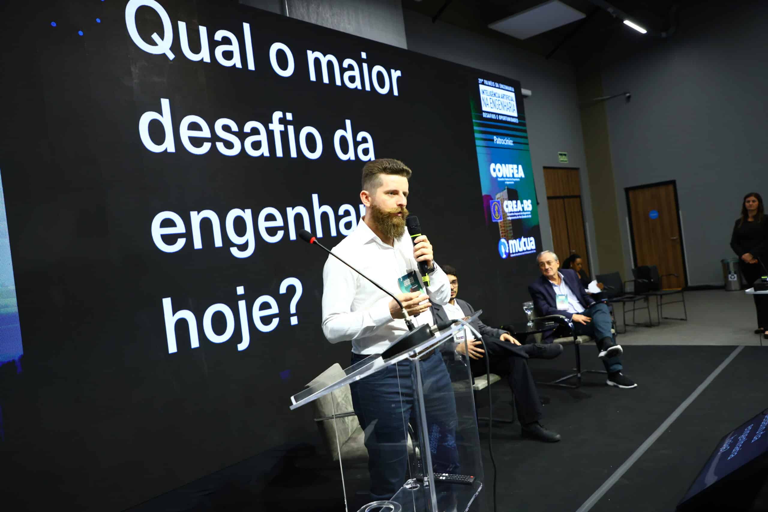 A abertura contou com a participação do presidente do SENGE-RS, Cezar Henrique Ferreira, do presidente do CONFEA, Vinicius Marchese, e da presidente do CREA-RS, Nanci Walter, que reforçaram a relevância do tema para toda a categoria e para o Sistema Profissional. Em suas manifestações, destacaram a importância de alinhar inovação tecnológica, responsabilidade técnica e valorização profissional, garantindo que a adoção da Inteligência Artificial ocorra com segurança para a sociedade e com respaldo às atribuições de engenheiras e engenheiros.