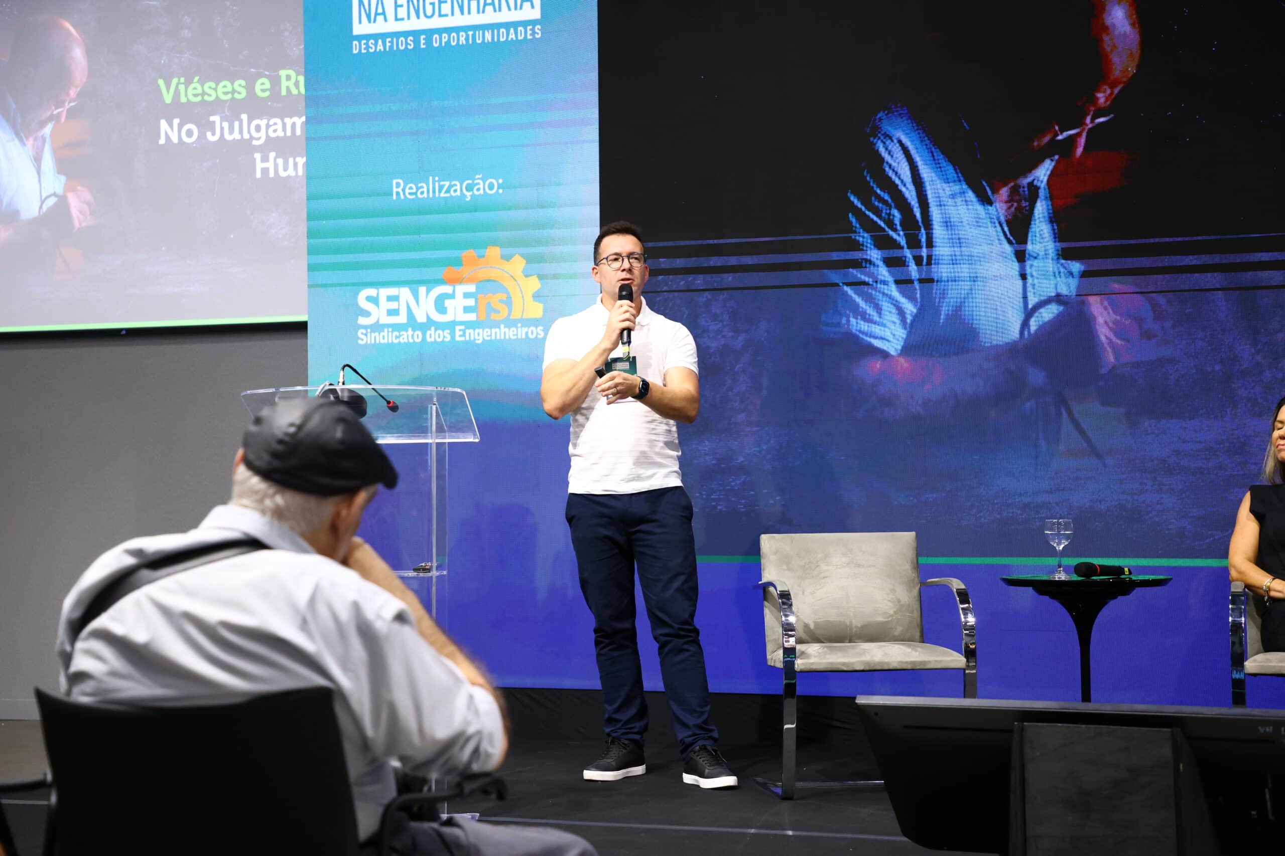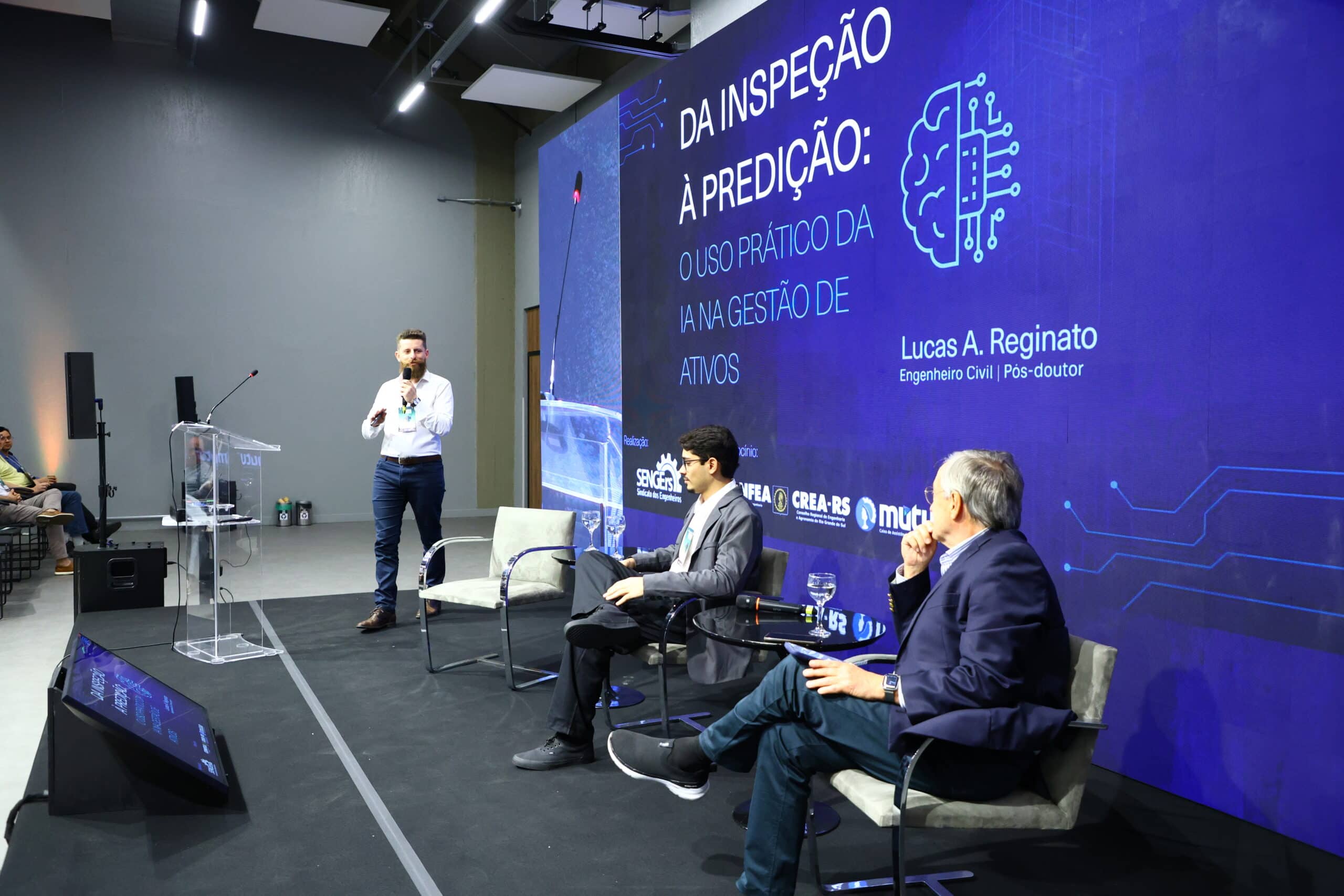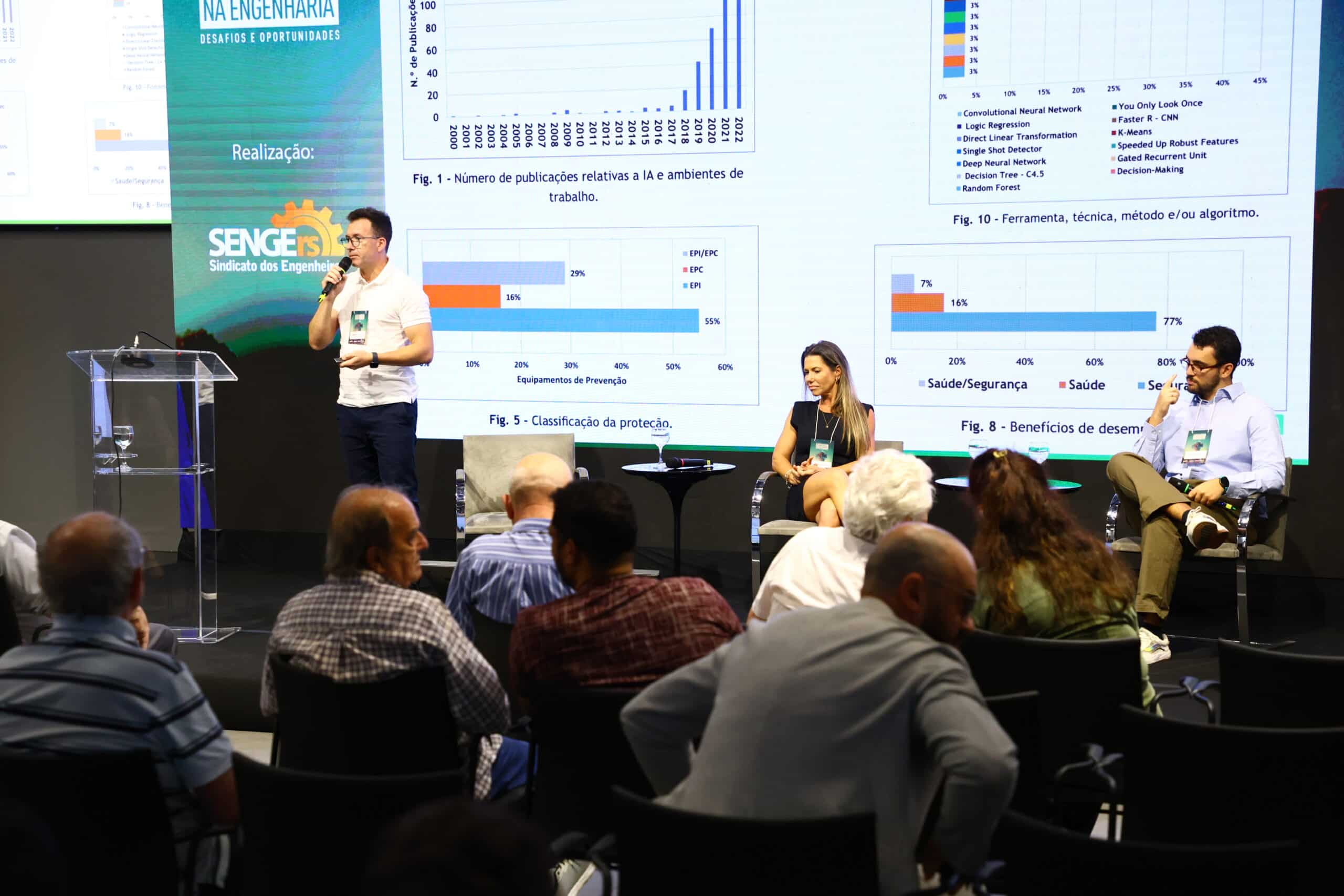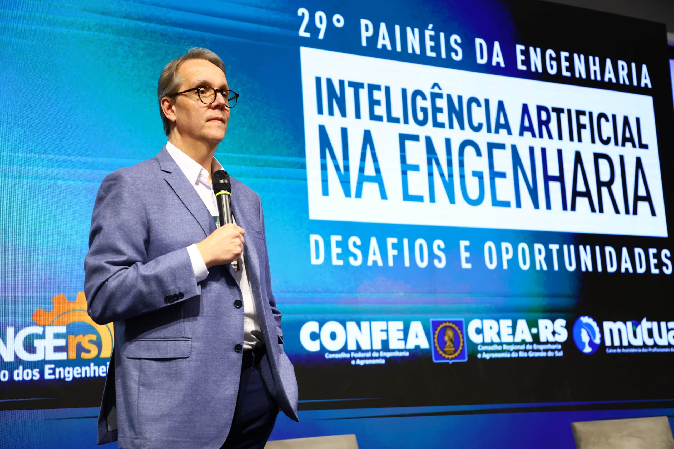 A abertura contou com a participação do presidente do SENGE-RS, Cezar Henrique Ferreira, do presidente do CONFEA, Vinicius Marchese, e da presidente do CREA-RS, Nanci Walter, que reforçaram a relevância do tema para toda a categoria e para o Sistema Profissional. Em suas manifestações, destacaram a importância de alinhar inovação tecnológica, responsabilidade técnica e valorização profissional, garantindo que a adoção da Inteligência Artificial ocorra com segurança para a sociedade e com respaldo às atribuições de engenheiras e engenheiros.