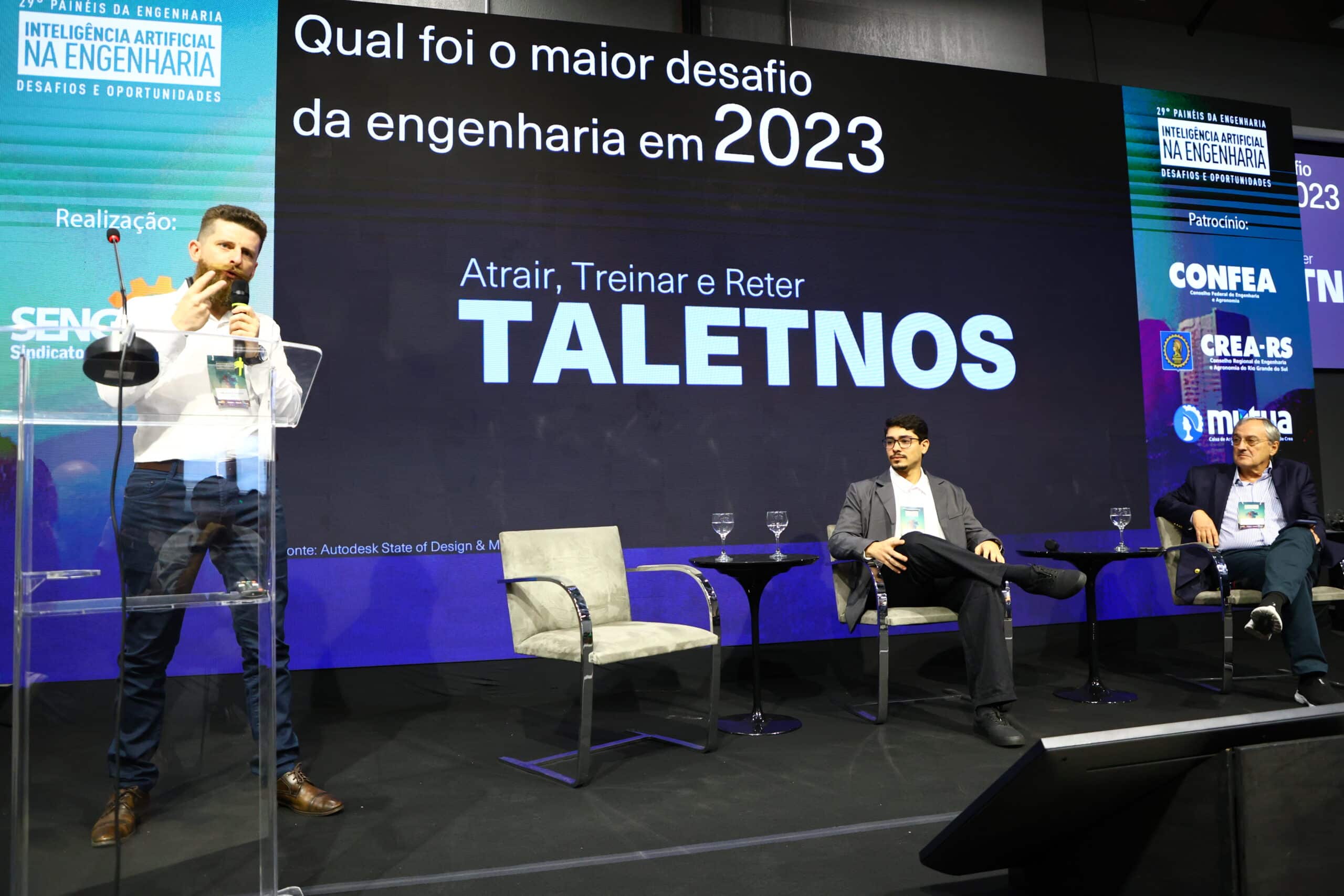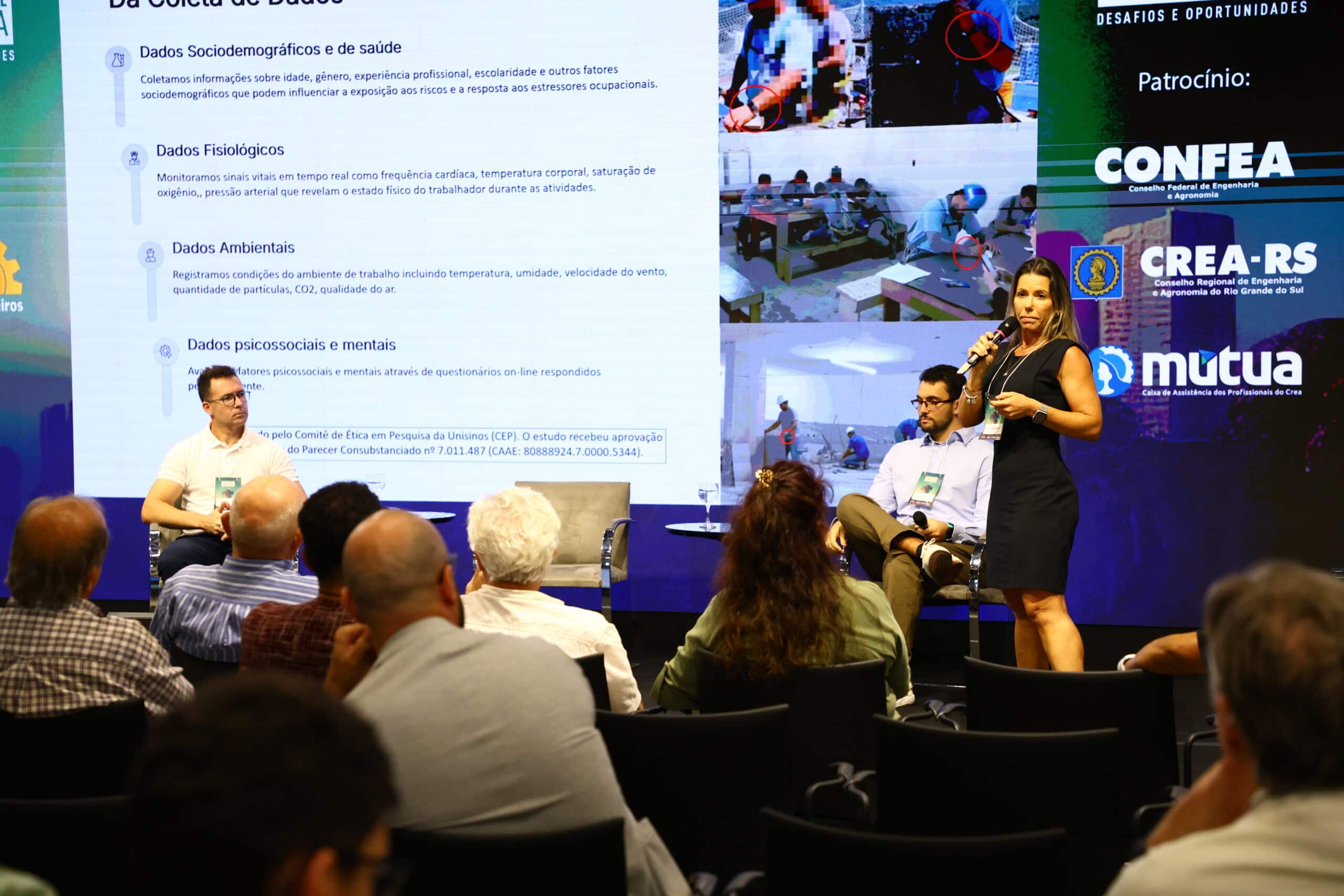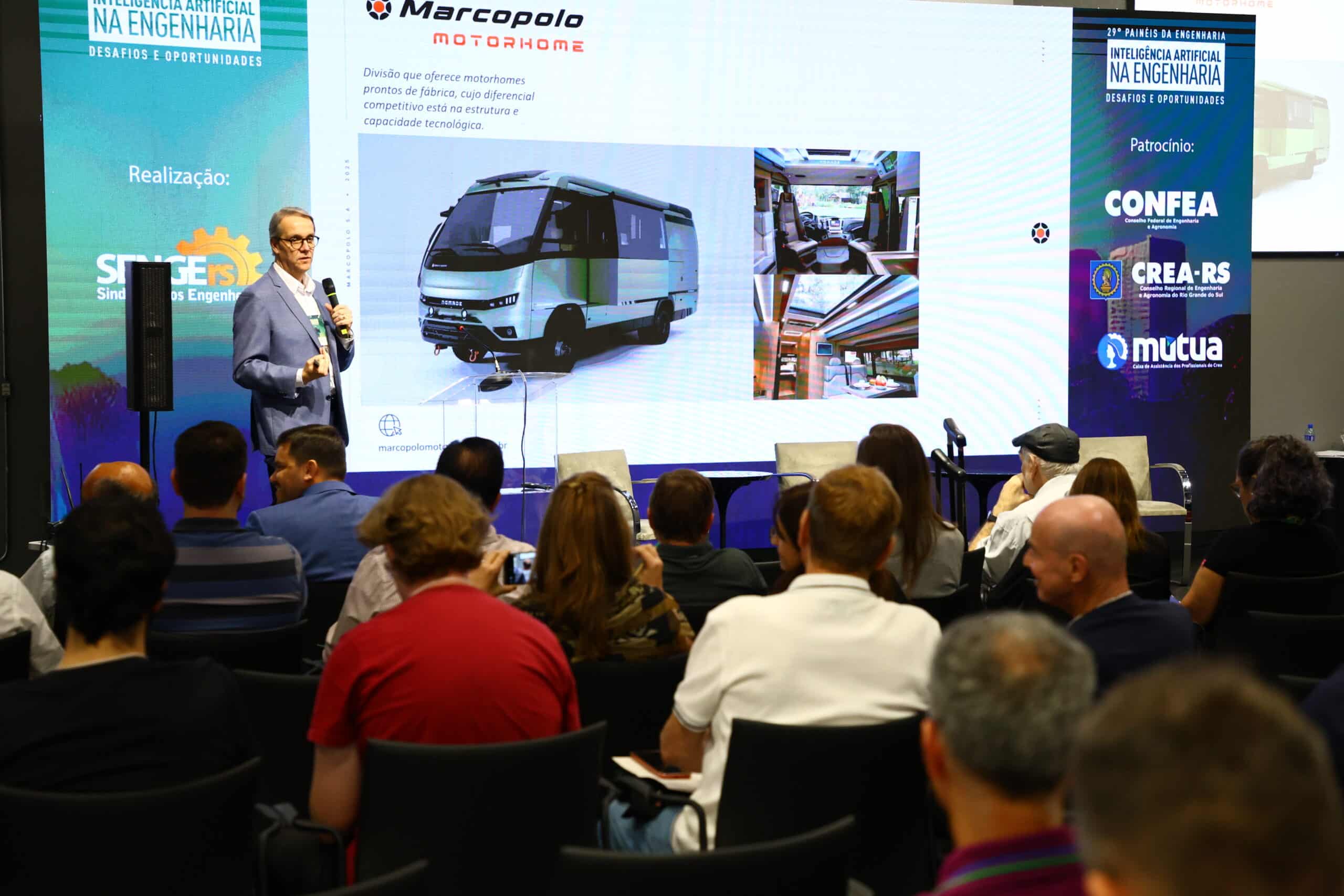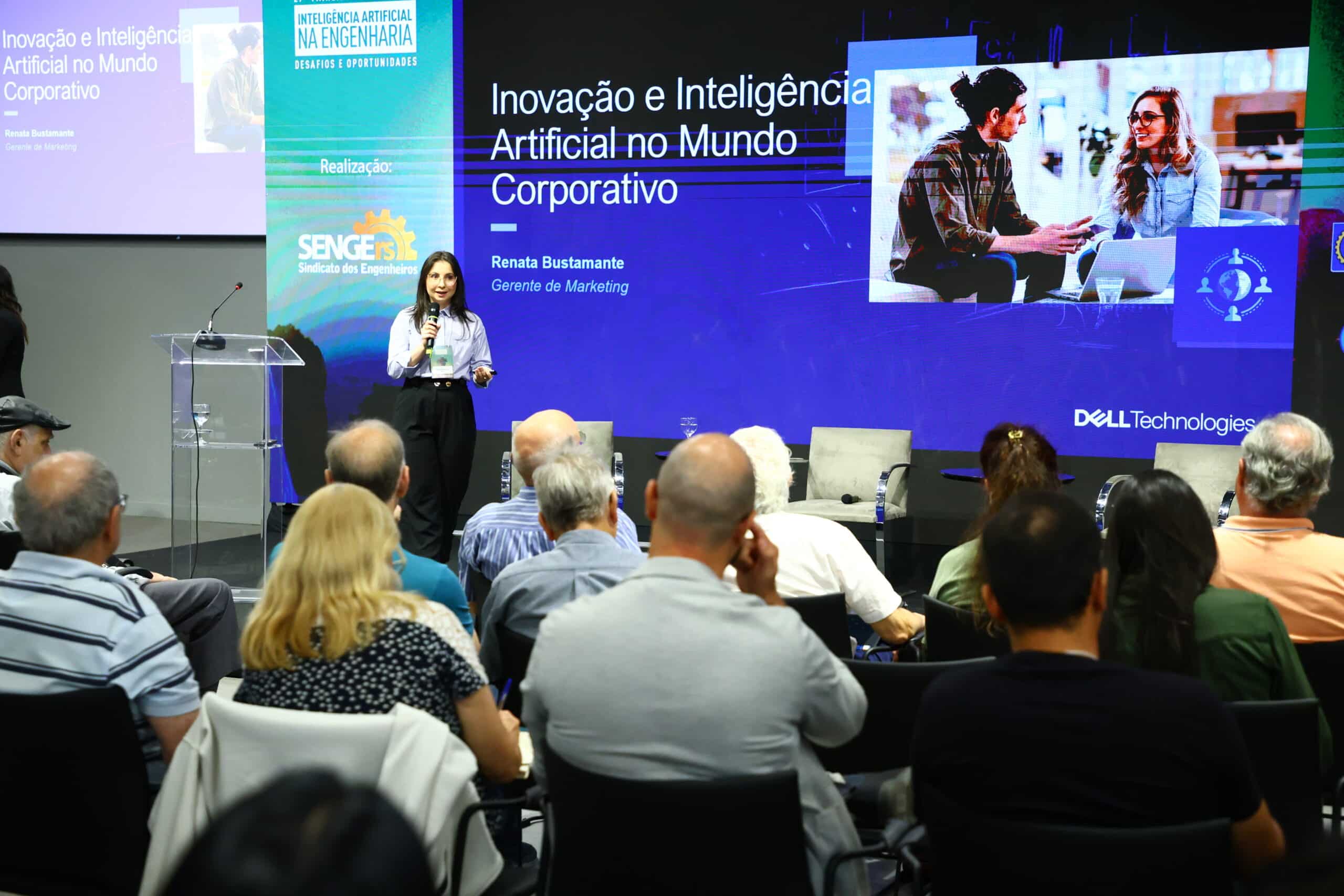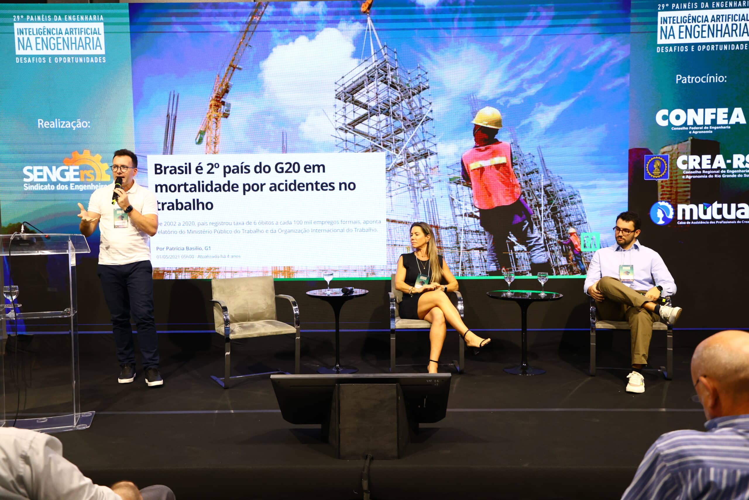 A abertura contou com a participação do presidente do SENGE-RS, Cezar Henrique Ferreira, do presidente do CONFEA, Vinicius Marchese, e da presidente do CREA-RS, Nanci Walter, que reforçaram a relevância do tema para toda a categoria e para o Sistema Profissional. Em suas manifestações, destacaram a importância de alinhar inovação tecnológica, responsabilidade técnica e valorização profissional, garantindo que a adoção da Inteligência Artificial ocorra com segurança para a sociedade e com respaldo às atribuições de engenheiras e engenheiros.