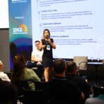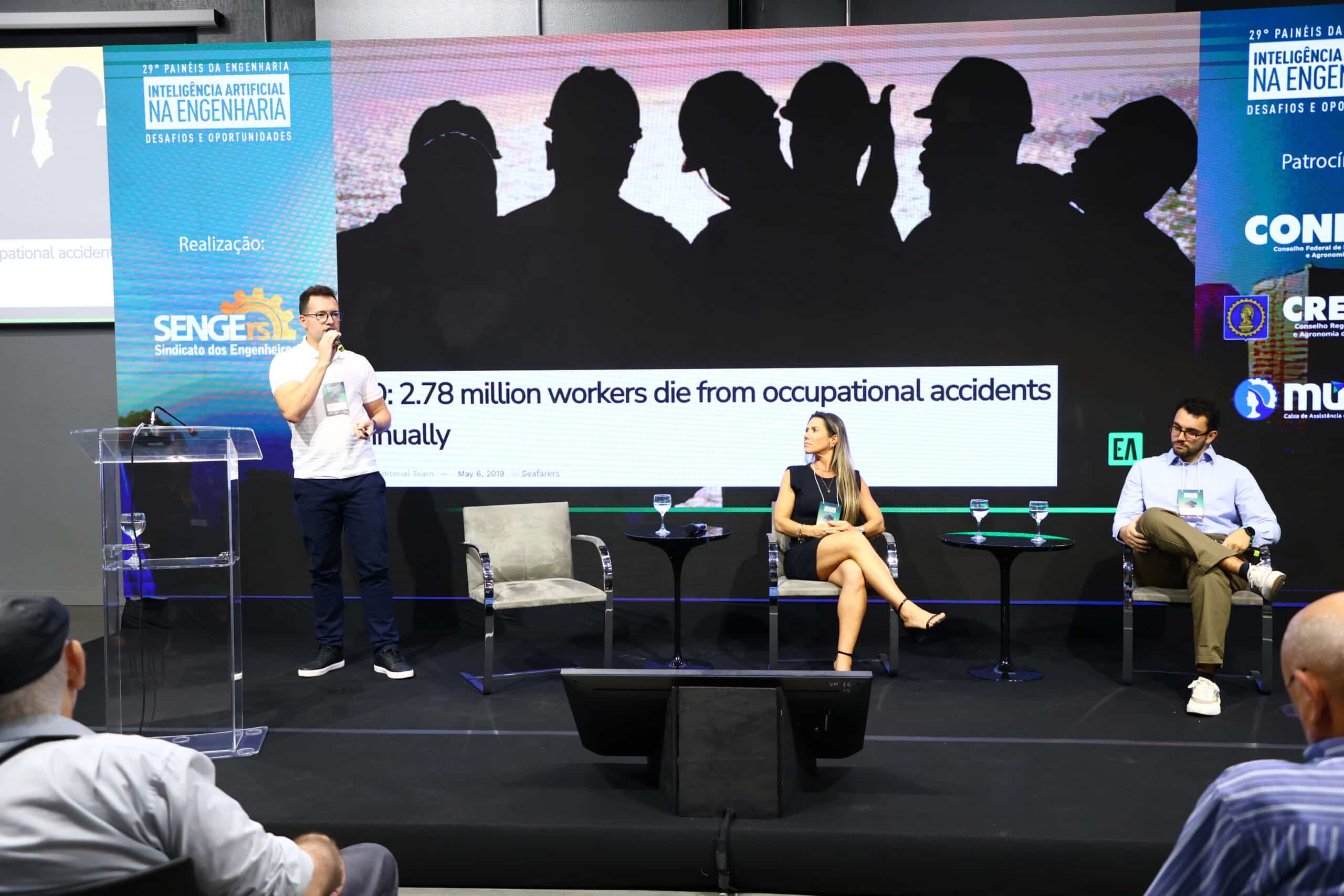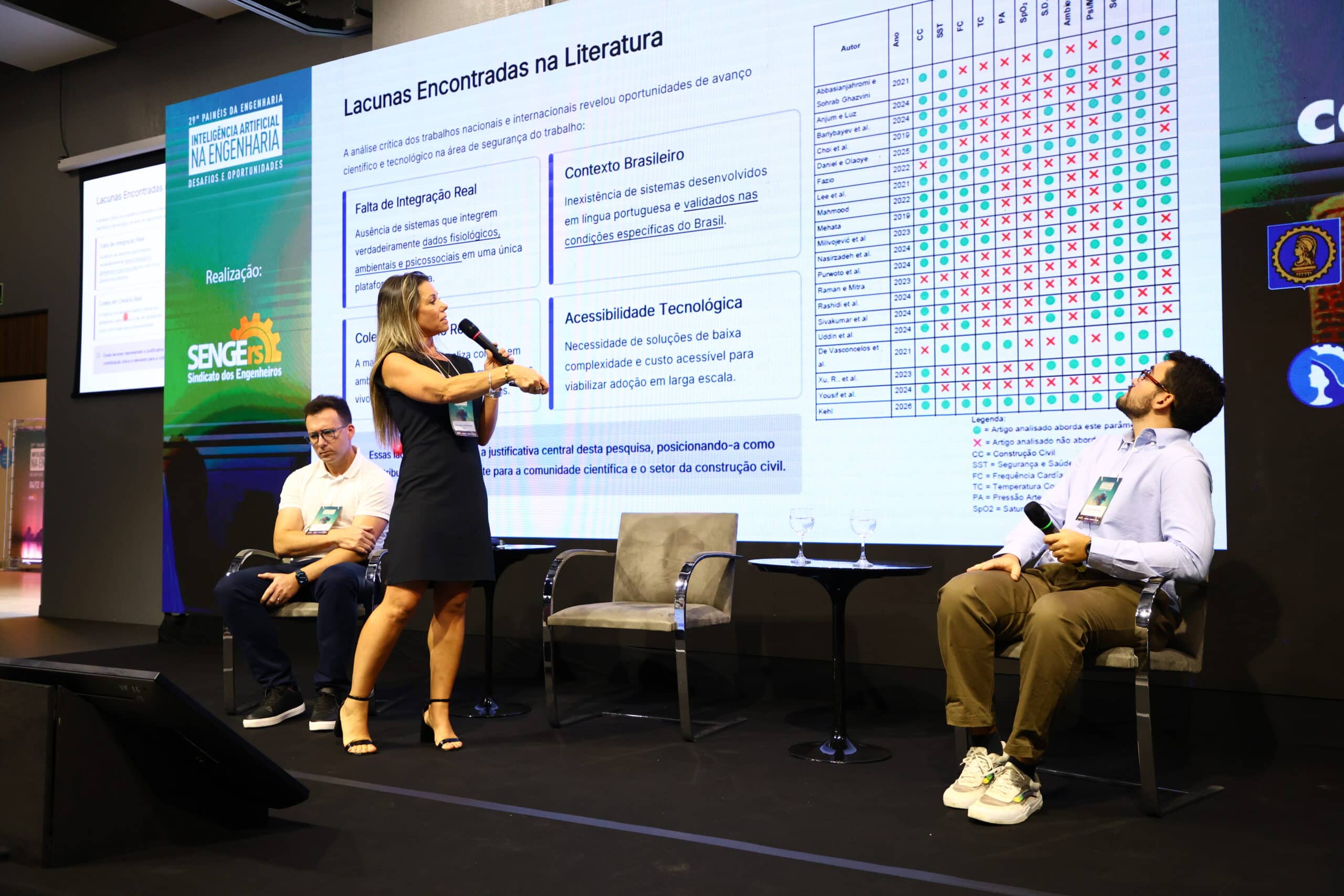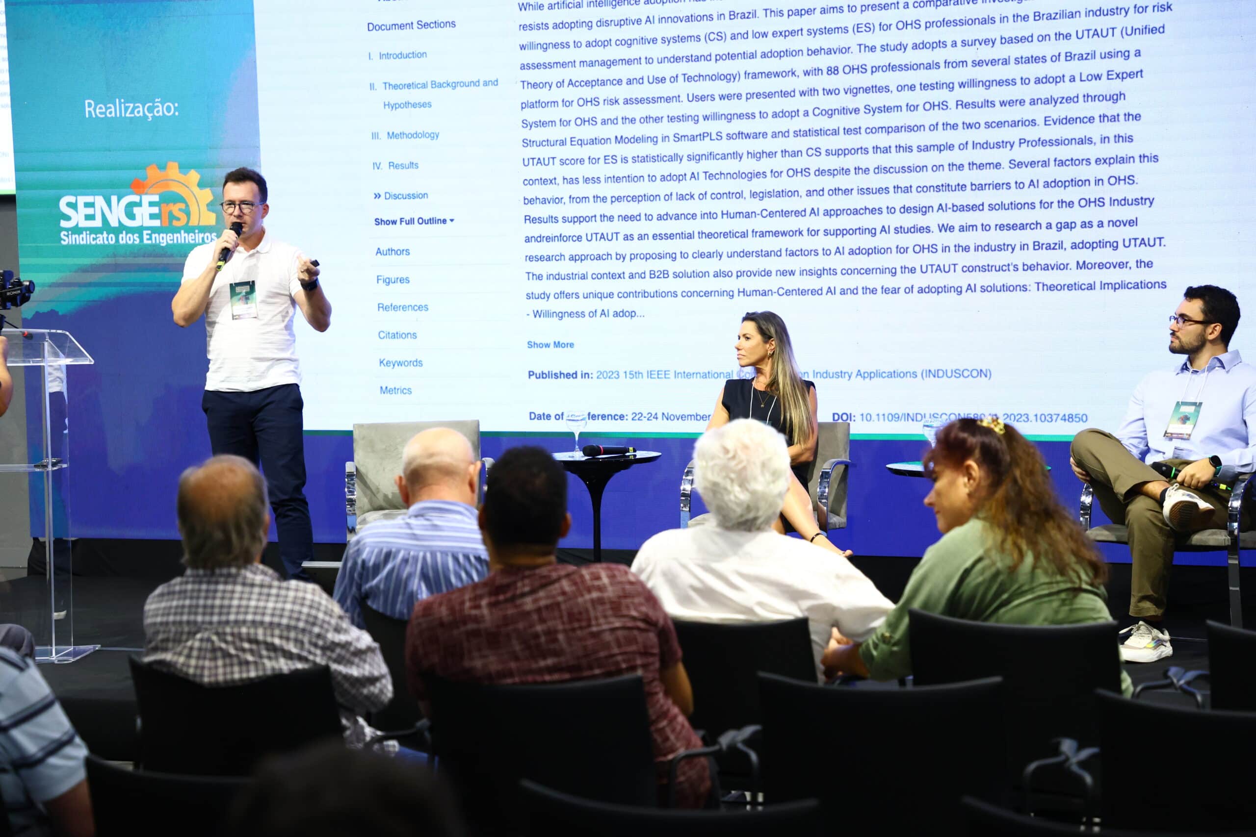 Ao longo do dia, estudantes e profissionais de Engenharia e de áreas correlatas acompanharam palestras e painéis sobre ética e regulamentação do uso da IA, aplicações na indústria, na Construção Civil, na segurança do trabalho, na gestão de projetos e na transformação digital das empresas. A programação combinou a visão de pesquisadores(as) da academia e de profissionais de mercado, que trouxeram experiências concretas vivenciadas em empresas e indústrias, com cases reais de uso da Inteligência Artificial em ambientes produtivos.