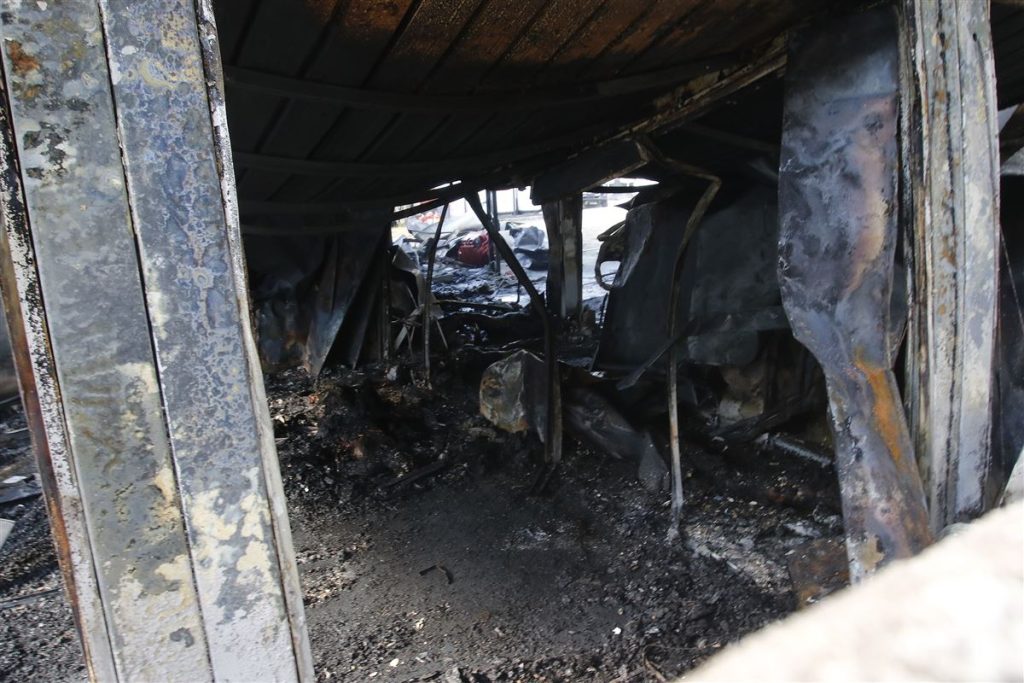 Interior do alojamento do Ninho do Urubu, que pegou fogo na semana passada, no Rio