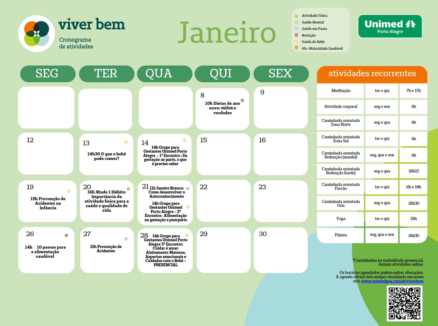Essas ações fazem parte da programação de promoção da saúde organizada pela Unimed Porto Alegre, parceira do Plano de Saúde SENGE Unimed Poa, e refletem uma abordagem que entende o bem-estar como algo possível, contínuo e adaptável a diferentes momentos de vida. Todas as atividades são gratuitas e abertas ao público, independentemente de vínculo com os Planos de Saúde SENGE Unimed Poa.