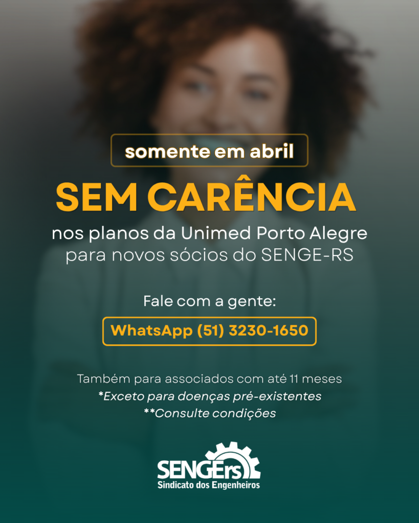 Durante o mês de abril, os novos sócios do SENGE terão uma condição especial para contratar um plano de saúde da Unimed Porto Alegre: isenção do período de carência.