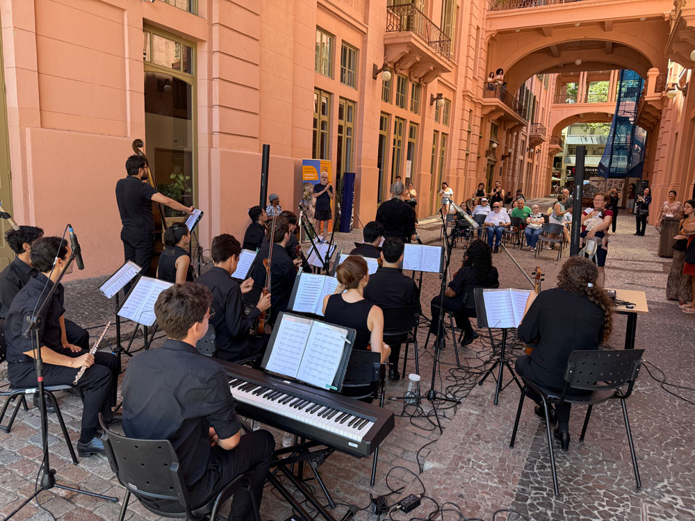 Na última sexta-feira (06), a Orquestra do Instituto Porto-Alegrense de Arte-Educação (IPDAE) realizou um concerto aberto ao público na Casa de Cultura Mário Quintana, no Centro Histórico de Porto Alegre. A apresentação ocorreu no andar térreo, integrando a programação oficial do Porto Verão Alegre, com apoio do Sindicato dos Engenheiros no Rio Grande do Sul (SENGE-RS).
