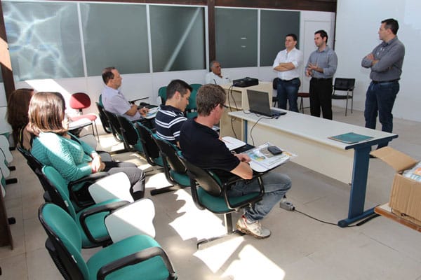 Após a saudação inicial feita pelo engenheiro Rafael Volquind, membro do Conselho Técnico Consultivo do Sindicato, e pelo presidente Alexandre Wollmann, foi apresentado o vídeo institucional do SENGE, sintetizando os principais serviços e benefícios disponibilizados pela entidade aos seus associados. Na sequência Wollmann e a advogada da entidade Leonora Waihrich t,ambém presente no encontro, responderam diversas dúvidas encaminhadas pelos colegas, relativas a pontos específicos de um futuro acordo coletivo, entre eles a periculosidade, o cumprimento do Piso Nacional da Categoria e a relação com o sindicato majoritário. O SENGE também esteve representado pelo diretor de negociações coletivas Tadeu Rodriguez e pela gerente de atendimento Maristela Tarallo.