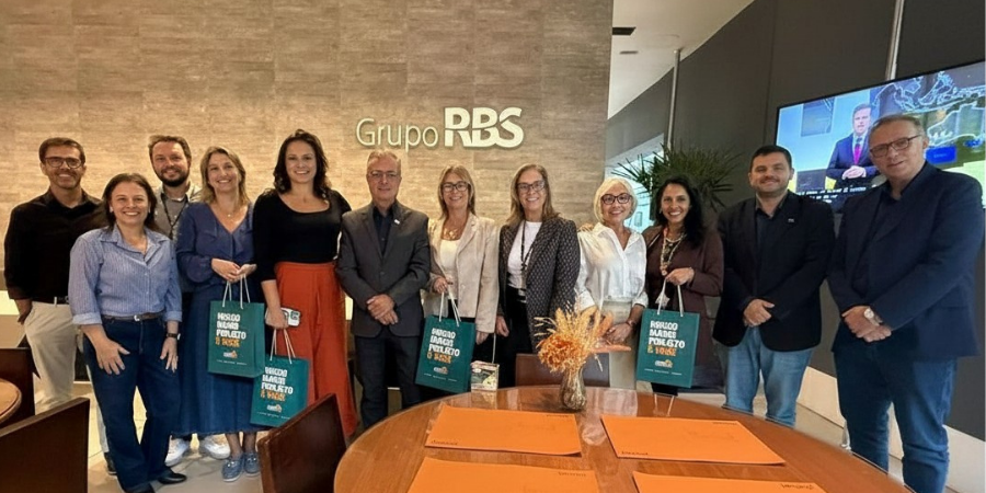 O presidente do Sindicato, Cezar Henrique Ferreira, o vice-presidente João Leal Vivian, o diretor administrativo Dulphe Pinheiro Machado Neto e a gerente de Comunicação Valéria Deluca participaram do encontro com o gerente-executivo de Jornalismo da ZH, Rodrigo Müzell, as jornalistas Giane Guerra e Gisele Loeblein, e equipe executiva do Grupo.