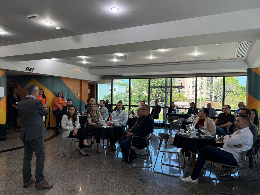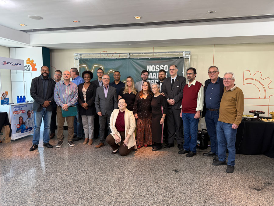 Representando o SENGE-RS, também estavam presentes o vice-presidente João Leal Vivian, os diretores administrativos, Dulphe Pinheiro Machado Neto e Nelso Portelinha, o diretor de Negociações Coletivas, Tadeu Rodriguez, e a diretora de Apoio e Qualificação Profissional, Jéssica Moraes.