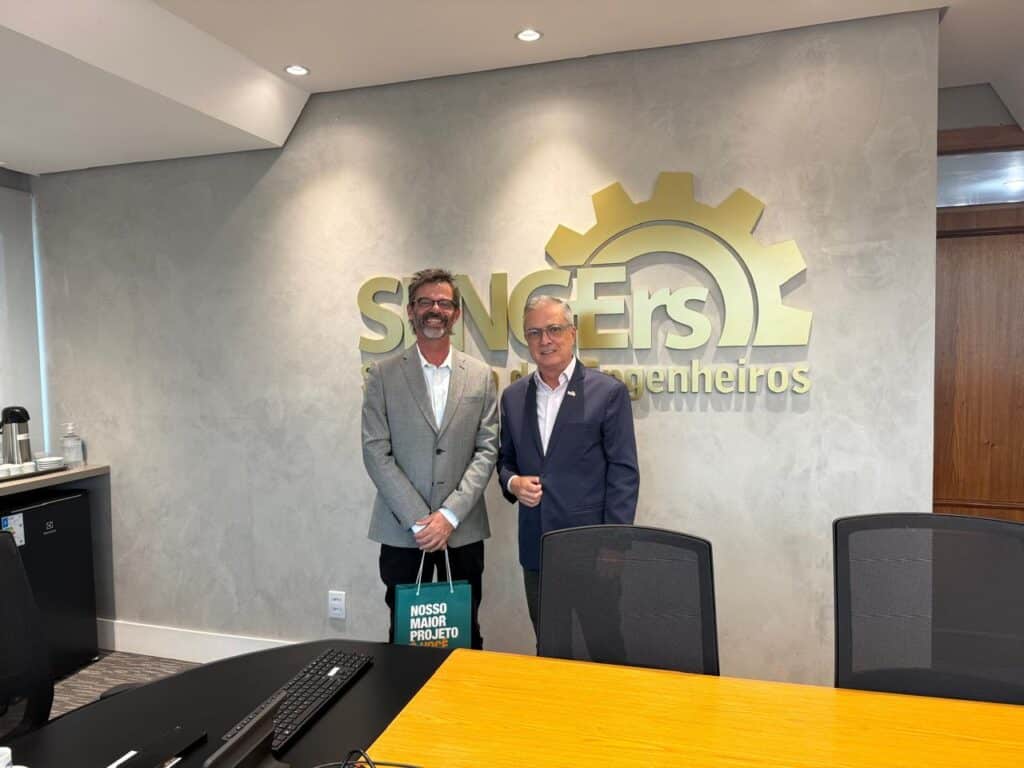 O presidente do SENGE-RS, Cezar Henrique Ferreira, recebeu nesta semana a visita do presidente da Sociedade de Engenharia do Rio Grande do Sul (SERGS), Leonardo Treiguer.