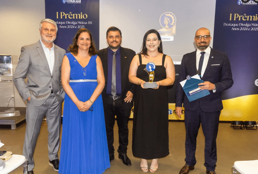 O Sindicato dos Engenheiros no Rio Grande do Sul (SENGE-RS) recebeu, na última sexta-feira (5), o reconhecimento da Mútua-RS ao conquistar o 1º lugar do Prêmio Destaque Divulga Mútua RS – Edição 2024/2025, iniciativa inédita criada para valorizar projetos desenvolvidos com apoio do programa Divulga Mútua em todo o Estado. O Sindicato foi representado pelo seu vice-presidente João Leal Vivian e pela diretora adjunta de Apoio e Qualificação Profissional, Jéssica Moraes.