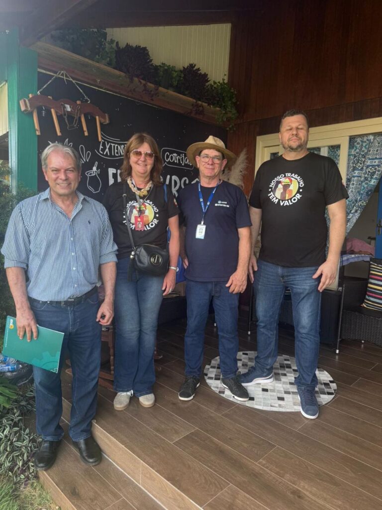 Durante a visita à Expodireto, Azambuja também destacou a relevância da presença da EMATER no evento, onde a instituição mantém diversos espaços dedicados à apresentação de projetos, tecnologias e práticas voltadas ao desenvolvimento do meio rural. No pavilhão da agroindústria familiar, chama a atenção a qualidade dos alimentos e produtos ofertados sendo que, grande parte deles é resultado das orientações repassadas pelos extensionistas rurais. Trabalho altamente relevante e necessário que precisa de equipes completas (1 engenheiro, veterinário ou zootecnista, 1 técnico agrícola e uma extensionista da área social) nos municípios atendidos para dar conta das demandas.