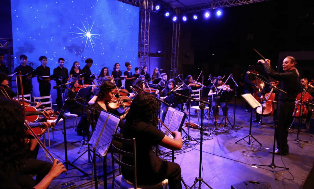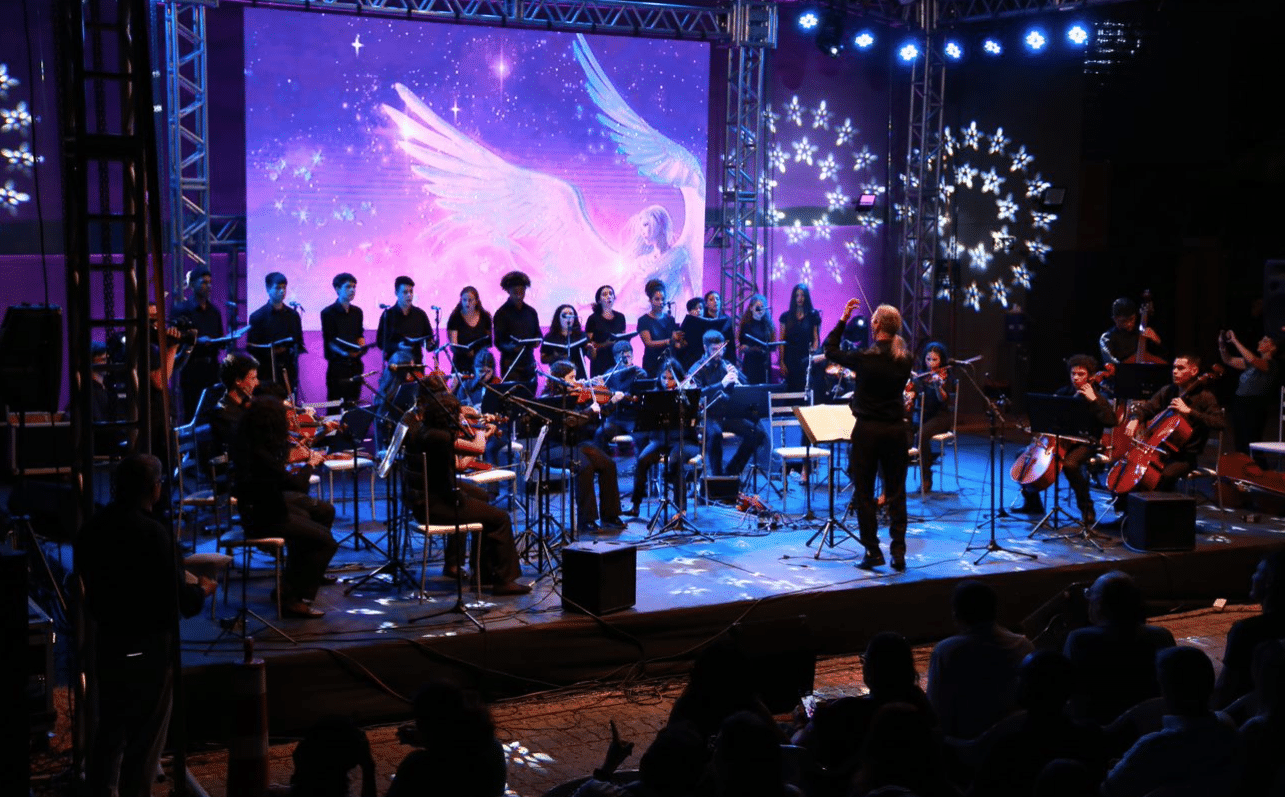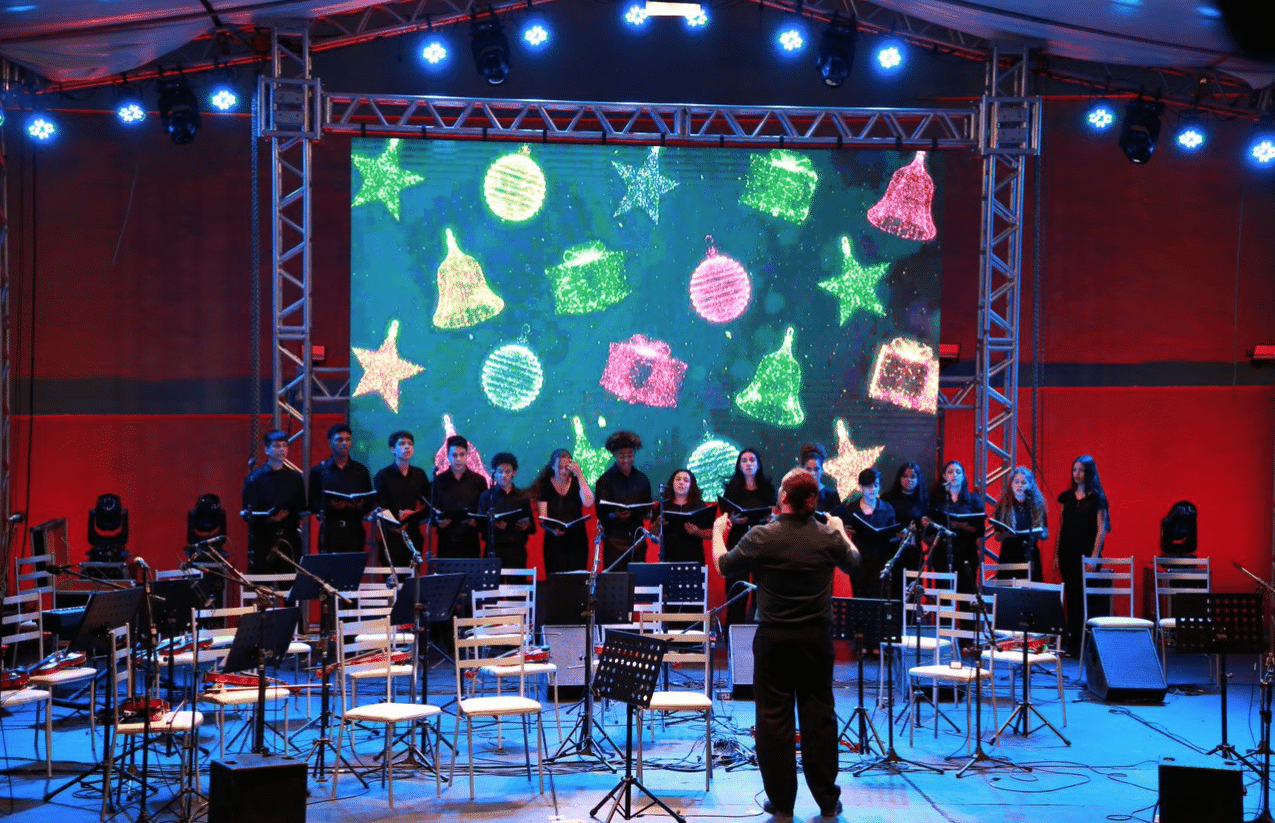 Da plateia, associados, parceiros e membros da comunidade local desfrutaram de um show marcante com apresentação do coro e orquestra do IPDAE, executando clássicos de Beethoven, Mozart e Bach, até Belchior, Gene Kelly e temas natalinos, como Ó Pinheirinho de Natal, Jingle Bells e Noite Feliz.