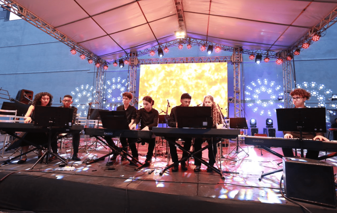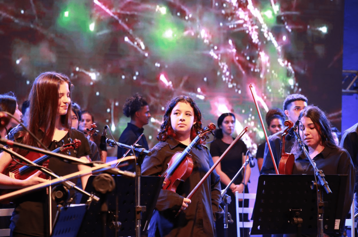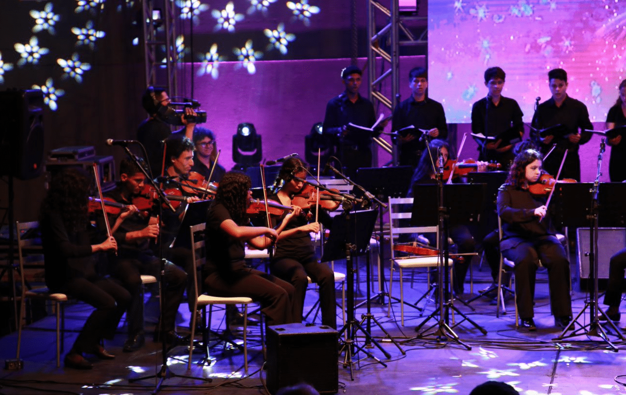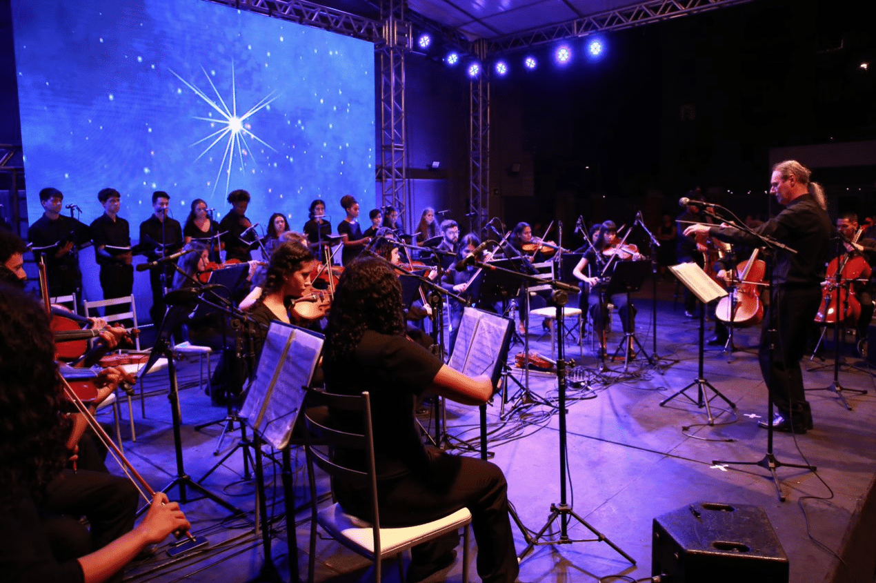 Da plateia, associados, parceiros e membros da comunidade local desfrutaram de um show marcante com apresentação do coro e orquestra do IPDAE, executando clássicos de Beethoven, Mozart e Bach, até Belchior, Gene Kelly e temas natalinos, como Ó Pinheirinho de Natal, Jingle Bells e Noite Feliz.
