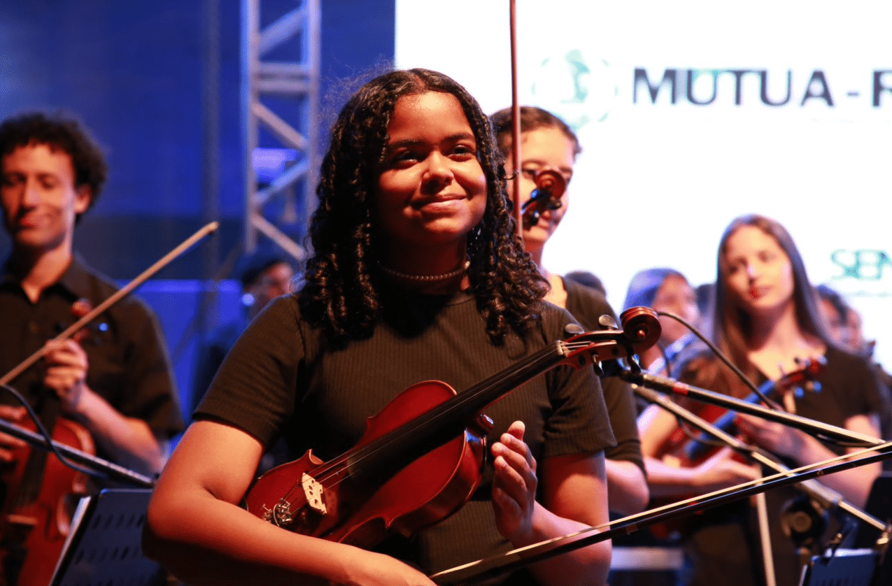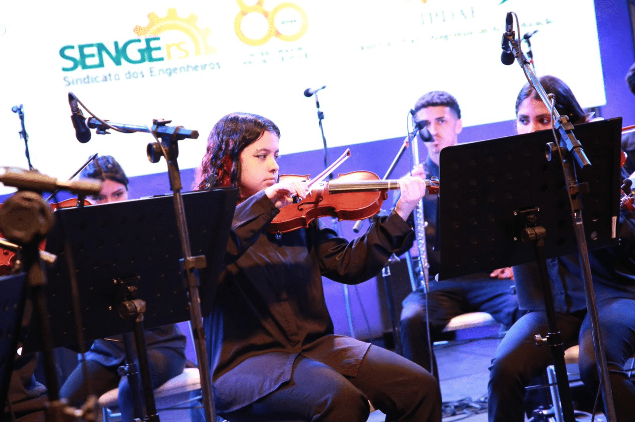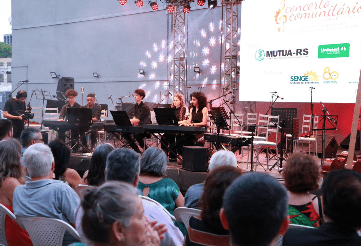 Com um eclético repertório de músicas clássicas e populares, os jovens do Instituto Porto-Alegrense de Arte-Educação (IPDAE) emocionaram o público presente no Concerto Comunitário SENGE 80 Anos.