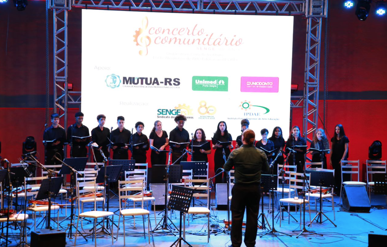 Com um eclético repertório de músicas clássicas e populares, os jovens do Instituto Porto-Alegrense de Arte-Educação (IPDAE) emocionaram o público presente no Concerto Comunitário SENGE 80 Anos.