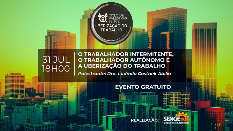 O Ciclo de Palestras SENGE prossegue com a participação da doutora em Ciências Sociais, Ludmila Abílio, que no dia 31 de julho, às 18h, irá palestrar sobre “o trabalhador intermitente, o trabalho autônomo e a uberização do trabalho”.