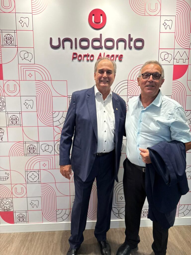 Legenda: Na foto, o diretor Dulphe Pinheiro Machado Neto com o presidente da Uniodonto Porto Alegre, Júlio César Maciel.